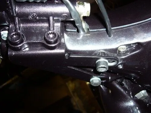• Das Teil an dem der Hebel jetzt befestigt ist abgesägt (bis auf ein wenig Futter um das Loch, durch das die Schraube kommt), glatt gefeilt, neu lackiert, den Halter an der Spiegelaufnahme und dem übrig gebliebenem Loch befestigt und gut is...