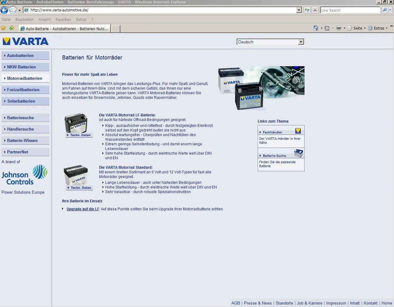 • Hi, eine Möglichkeit ist Bleischlamm. Der setzt sich unten ab und schließt die Platten kurz. Dadurch kommt es zu einem Verbrauch in der Batterie. So kleine Batterien sollten mit einem Batterieerhaltungsgerät überwintert werden. Schau dir die Batterie mal von unten an, ist da schwarzer Belag zu sehen? Ob sie noch zu retten ist kann ich nicht sagen aber konfrontier doch mal VARTA mit dem Problem. Die Batterie ich jetzt für mein Auto neu gekauft habe hat 3 Jahre Garantie. Und ein Tausch auf Kulanz ist immer möglich. Große Firmen haben es nicht gerne, wenn in Voren wie diesem über die Qualität ihrer Produkte diskutiert wird. Freundlichen Brief (keine E-Mail) mit Schilderung des Problems und daß ein solches Produkt einer so guten Firma doch nicht schon kaputt sein kann, usw Zunächst einmal mit dem Honigquast um Maul und dann die Enttäuschung. Auch der Hinweis auf die Werbung mit der zwei Jährigen Garantie. Ich habe damit schon einige gute Erfahrunhen gemacht.
