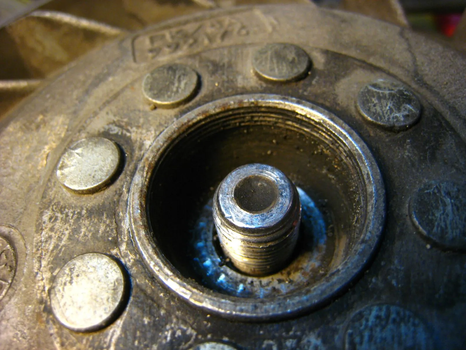 Also da wo die Mutter drauf war ist ein Gewinde (logisch) und es ist eine kleine Nut im Polrad zu sehen. Im Polrad-rand als solches ist kein Gewinde.