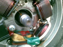 wenn du das polrad ab nimmst, und du innen reinguckst, dann siehst du eine rille wo der keil reingreift.