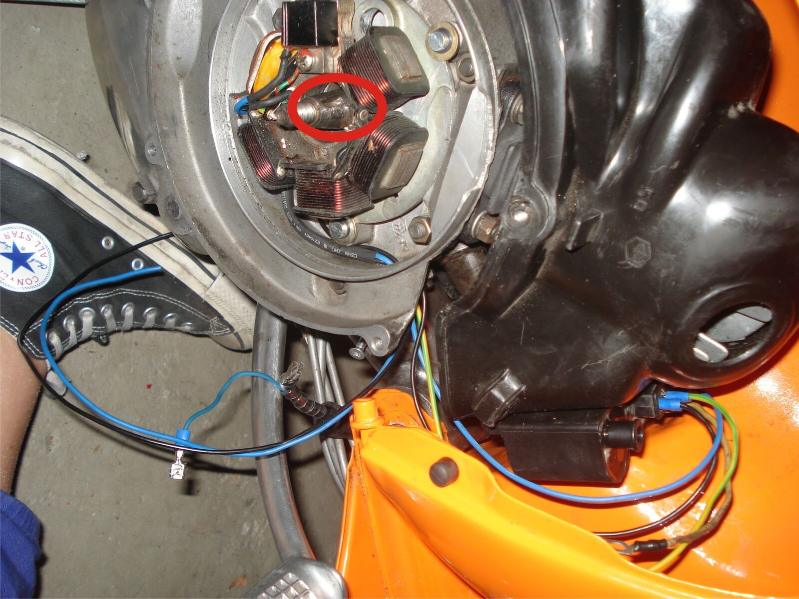wenn du das polrad ab nimmst, und du innen reinguckst, dann siehst du eine rille wo der keil reingreift.
