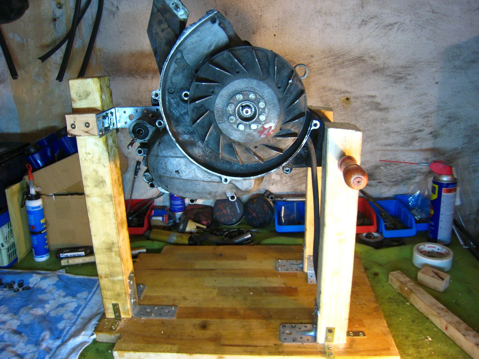 Und als Abschluss, hab heute mal schnell ein Motormontageständer gebaut, ich weiß der gewinnt keinen Schönheitspreis aber er erfüllt seinen Zweck.