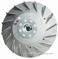 Allen Vespa Fahrern mit den großen Kurbelwellen (z.B. PK XL/PX/T5) legen wir die Verwendung eines HP4 Lüfterrades ans Herz: der denkbar einfache Austausch (Polradabzieher!) wird durch ein extrem agressives Ansprechverhalten des Motors belohnt. Immerhin befinden sich statt ca. 3000g nur etwa 1kg Gewicht an der Kurbelwelle... Durch die wesentlich verringerte Masse dreht der Motor spürbar leichter hoch, hängt besser am Gas und erreicht höhere Drehzahlen. Negative Auswirkungen auf Standgas- und Drehmomentverhalten bleiben aus. Gewaltig spürbarer Tuningeffekt der schon viele Vespafahrer angenehm überrascht hat! Vom Prinzip her ähnlich wie das HP4 Lüfterrad, allerdings nicht ganz soleicht (ca. 1.800g). Für alle, denen das HP4 Lüfterrad zu leicht, das Originale aber zu schwer ist. Neu im Programm sind wieder die PINASCO Carbon - Lüfterräder, die es auch für die kleinen smallframes gibt.Gewicht ca. 1800g. Nur für Rennsportzwecke!