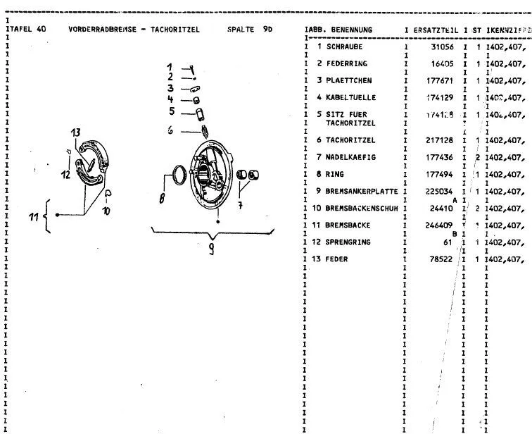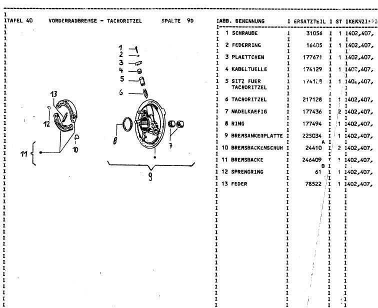 • Hi, auf der Zeichnung kannst Du die Teile sehen. Teile 1, 2, 3 abbauen, dann welle herausziehen, Nummer 4 sollte auf der Welle sitzen, wenn nicht ausbauen und aufschieben. Jetzt sollten das Plättchen und die Kabeltülle auf der Welle sitzen. Jetzt die Welle einführen und dabei das Vorderrad drehen. Wenn die Welle weit genug drin ist, mit dem Füß das Rad drehen und dabei auf den Tacho schauen. Wenn der Tacho zuckt olles OK, wenn nicht ist die alte Tachowelle so gestorben, das diese das Tachoritzel zerstört hat.