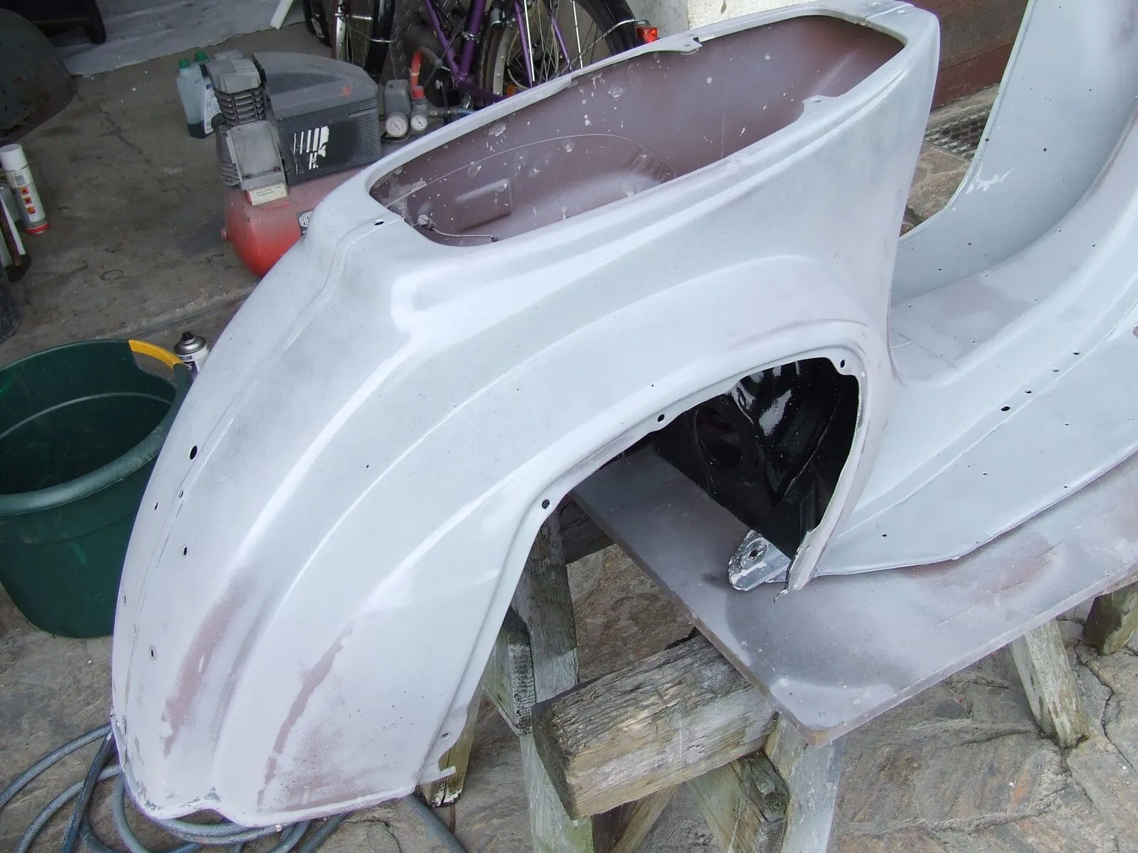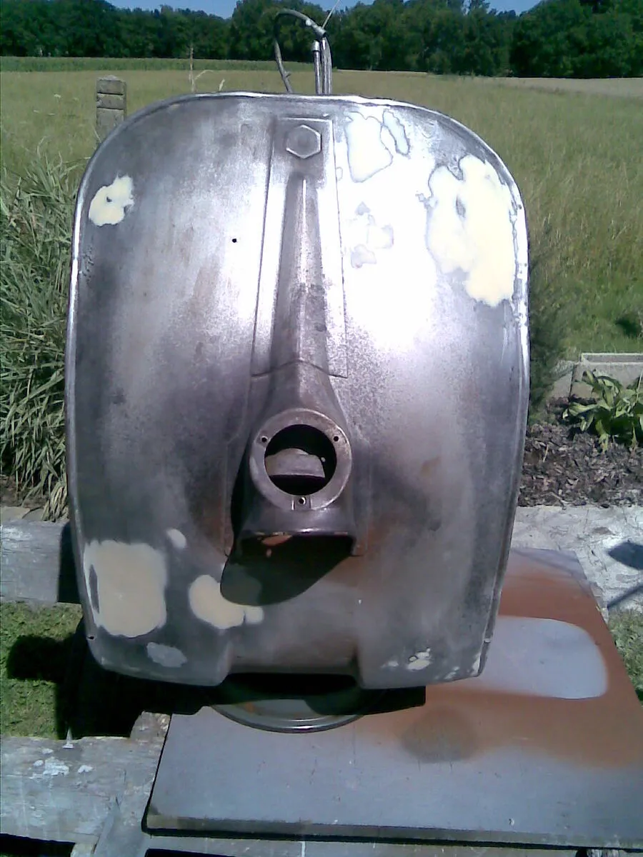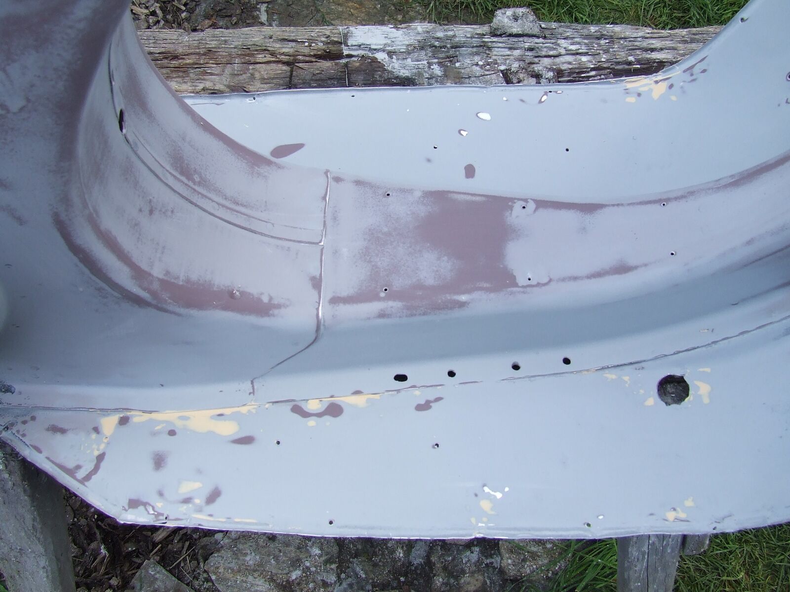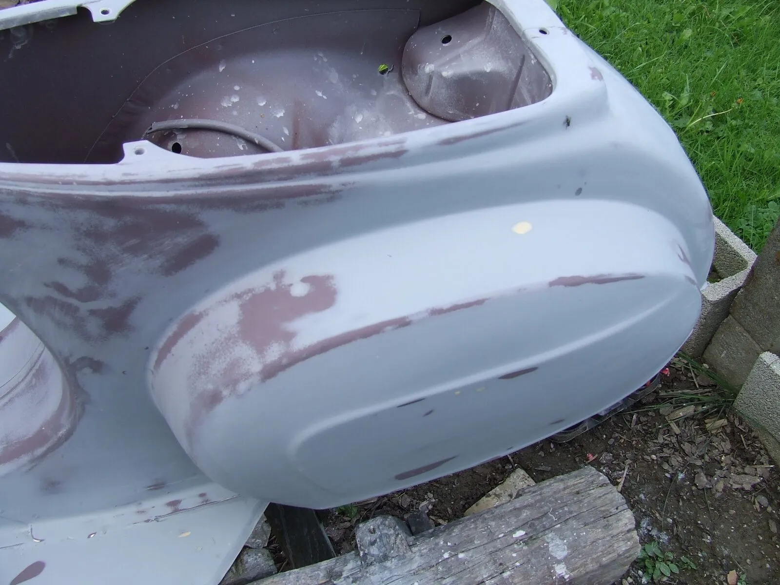 rahmen ist tw (trittblech,beinschild ) cm dick zugespachtel und auch mit polyesterfüller wurde nicht gespart dazu noch steinschlagschutz ,überall löcher gebohrt und blech tw sehr rissig und als querstrebenersatz ein winkeleisen eingeschweißt