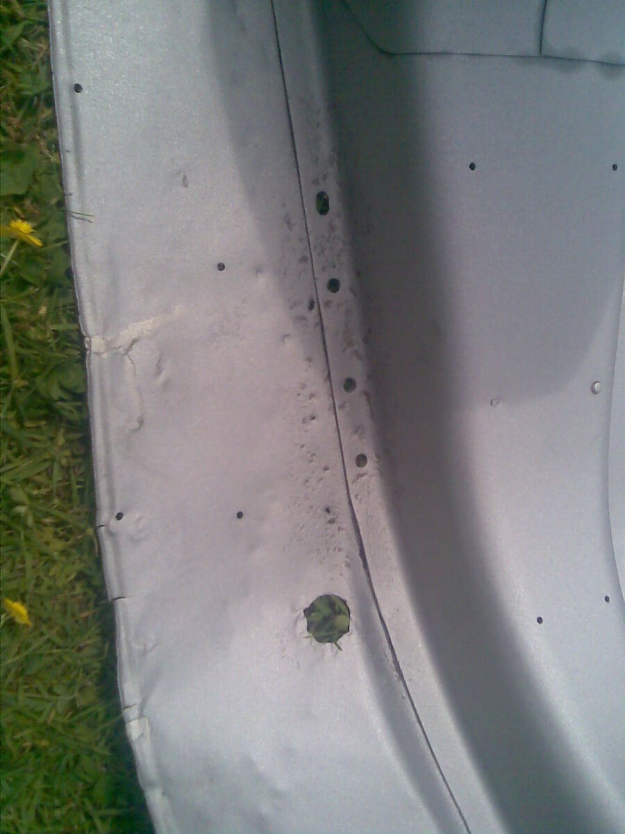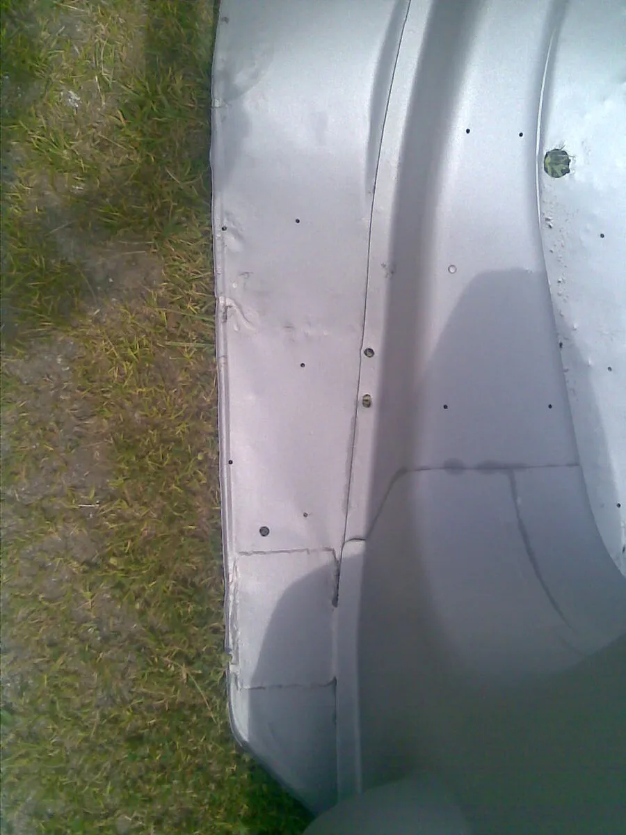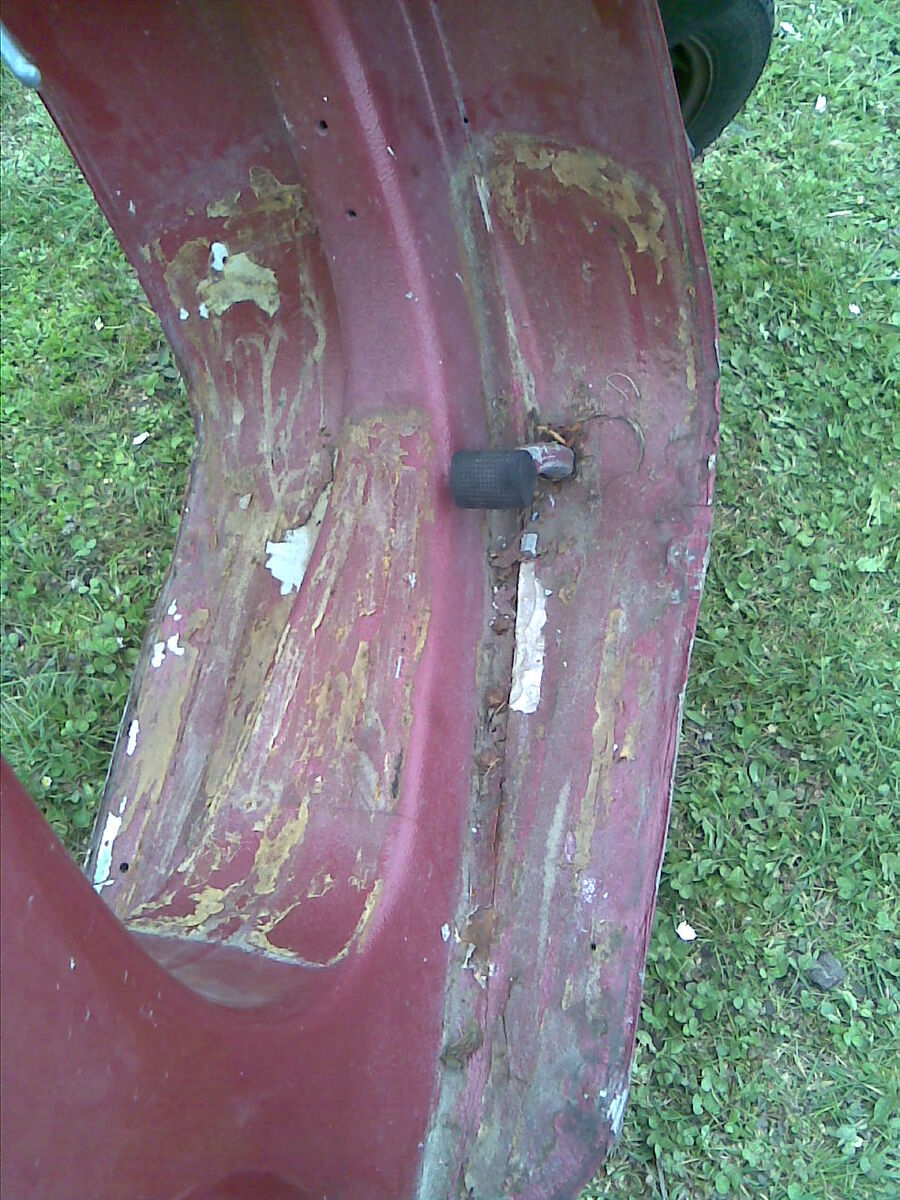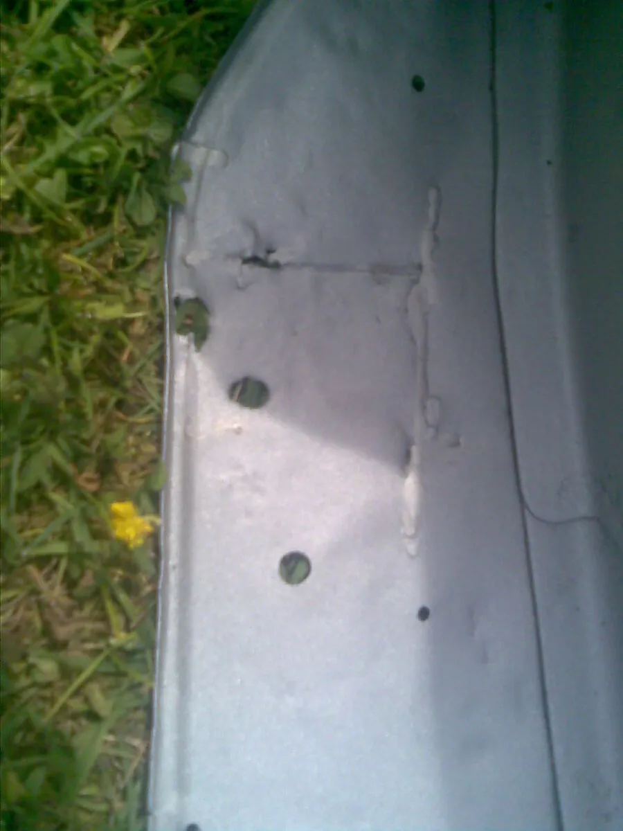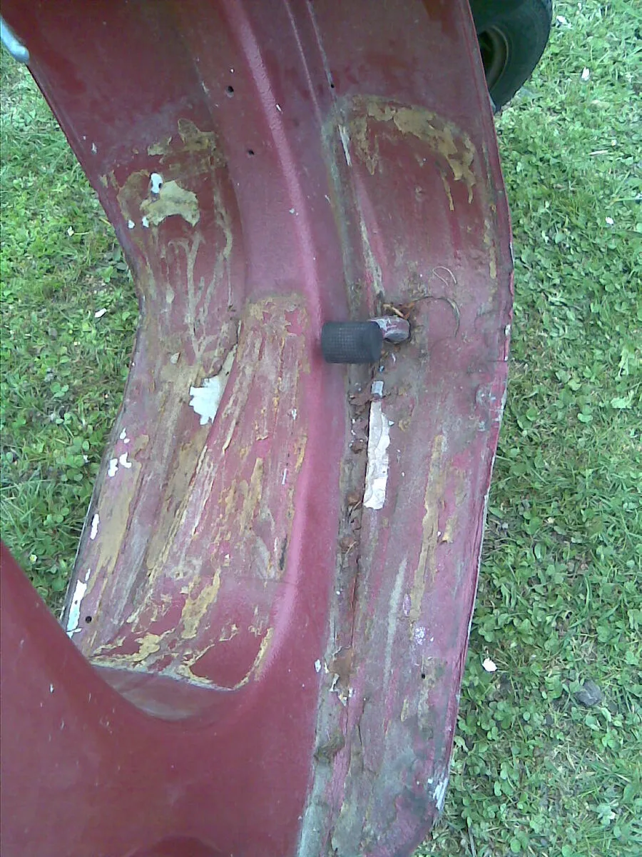 rahmen ist tw (trittblech,beinschild ) cm dick zugespachtel und auch mit polyesterfüller wurde nicht gespart dazu noch steinschlagschutz ,überall löcher gebohrt und blech tw sehr rissig und als querstrebenersatz ein winkeleisen eingeschweißt