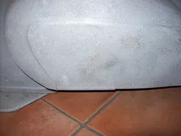 Ist sie da an der Seitenbacke eingerissen?Ach, und Du solltest den Seitenbackenverschluß rausbohren vorm lackieren