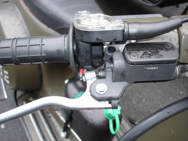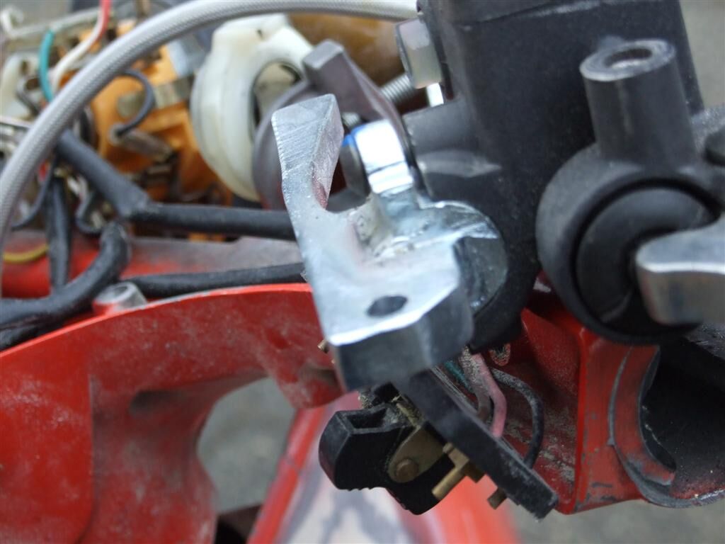 Man kann das nicht wirklich gut erkennen, wie das gelöst ist. Sehe ich das richtig, das er außer dem Abnehmen der "Bremshebelbefestigung" nichts am Lenkkopf geändert hat und die Bremspumpe einfach am Rohr geklemmt hat?