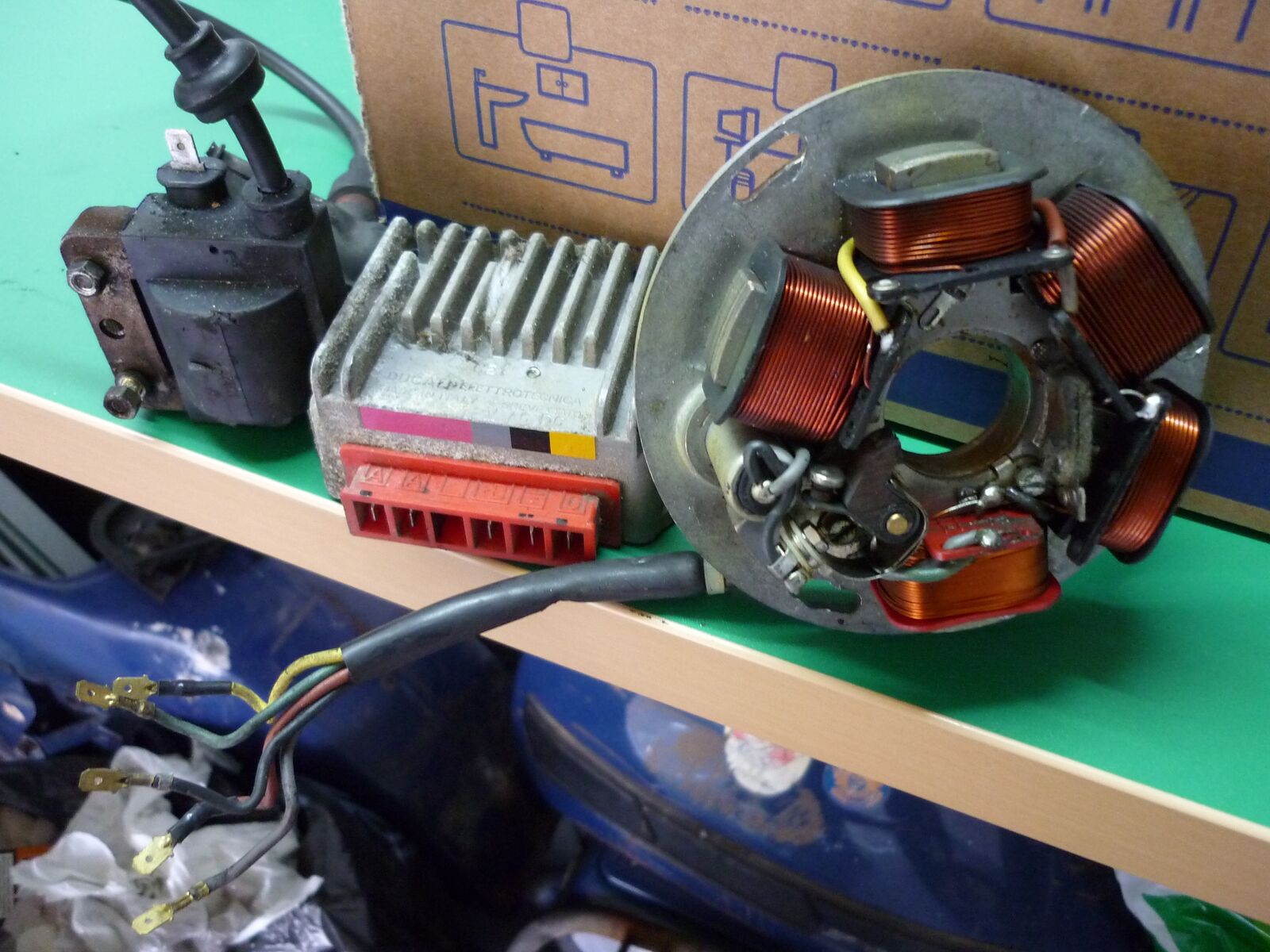 Ich bin am restaurieren einer Vespa P125X Jg.81, die mit Batterie (12V), Blincker, Zündgrundplatte mit 5 Kabel,