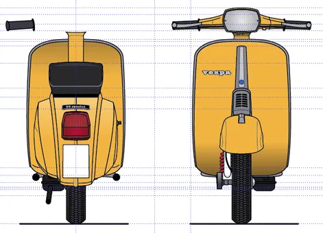 @ basti & vespa&rockRoll: wartet's ab, so hoch ist das am Ende ja gar nicht – Das ist ja der Trick. Man braucht halt nur ein Vektorprogramm (und zugegeben etwas Grundahnung). Basti, die PX-Bilder kann ich leider so nicht brauchen – Lenker steht schief und ist nicht genau von der Seite, sondern etwas schräg von hinten aufgenommen. Und bei der Heckansicht fehlt der Lenker. Trotzdem Danke!
