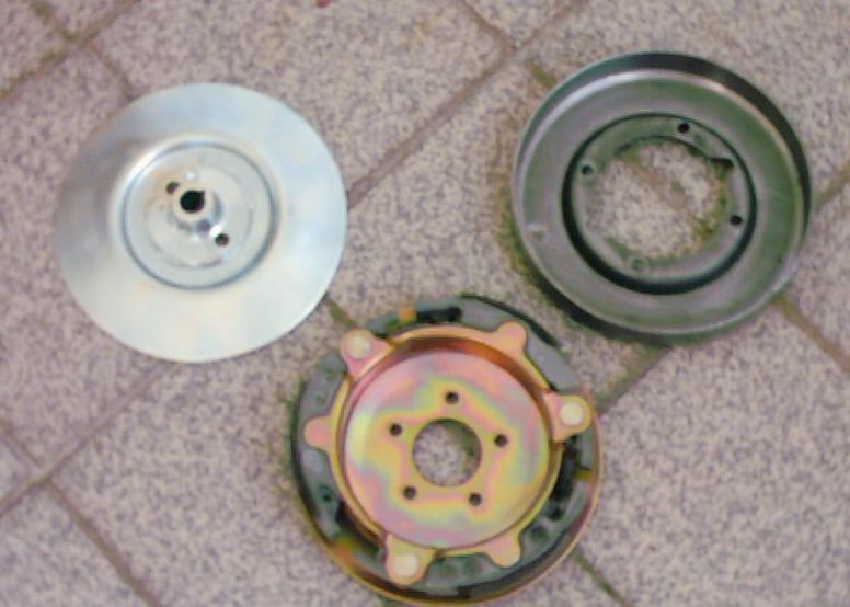 nun ist mir aufgefallen das wenn man leicht gas gibt die zwei Scheiben des Keilriemens nach aussen "wandern" ausserdem scheppert es im leerlauf ganz merkwürdig (es ist möglich das kein öl drin ist gibts aber erst morgen wieder:;-) wenn man den "gang" einlegt zieht das ding auch sofot nach vorne.