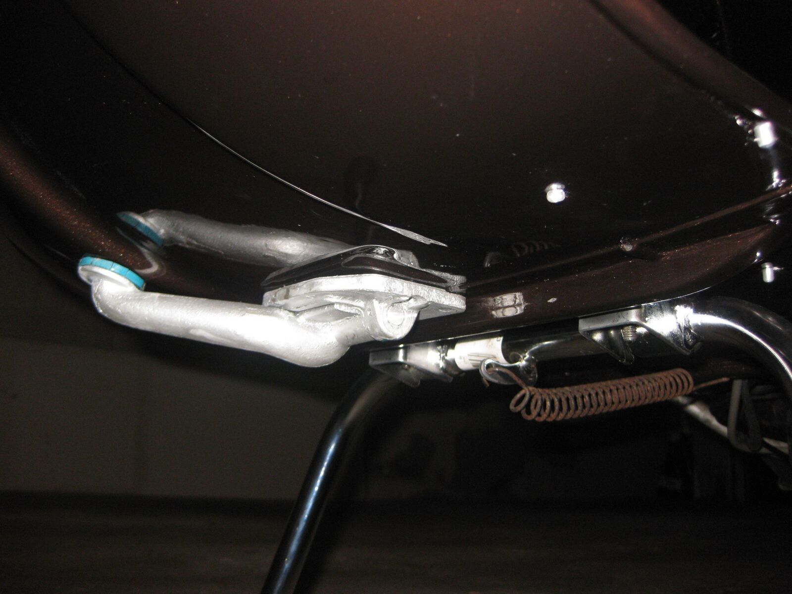 Weil der so "extrem" zur Gabel steht.P.S.: Die Hauptständerfeder, ist die rostig? Sieht so aus.