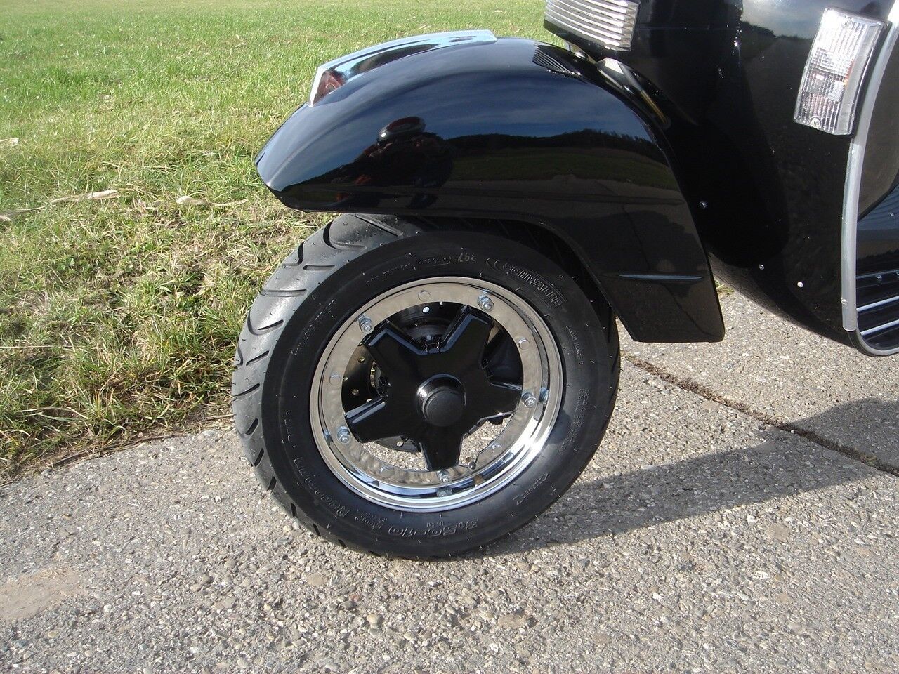 HQ Chromqualität und ein perfekter Rundlauf zeichnen diese Felge aus. So eiert nichts mehr und auch dem Winter ist der Schrecken genommen. Für diese Vespas mit 10 Zoll Bereifung