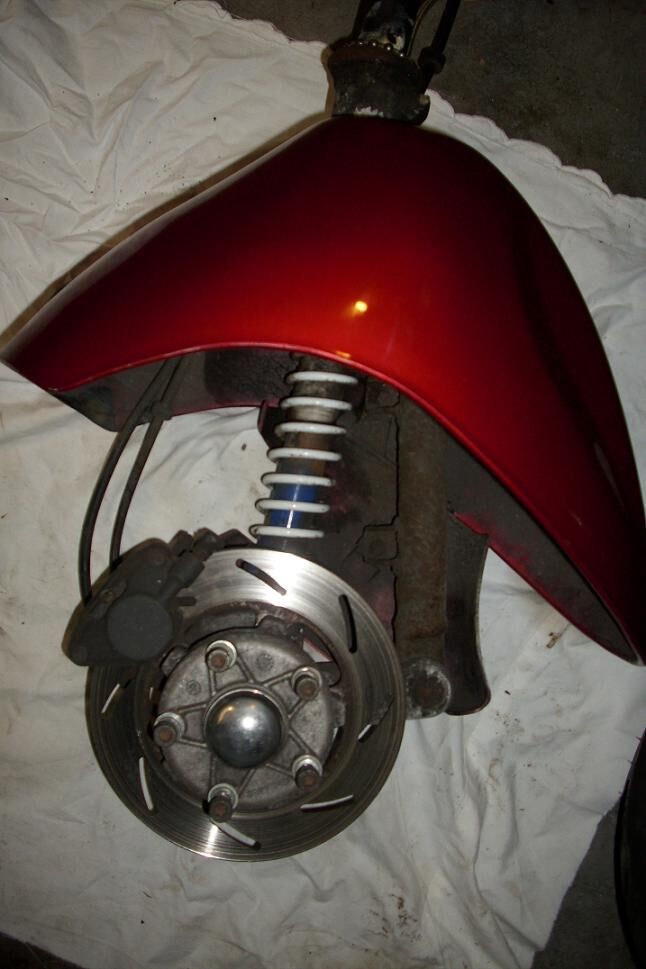 Piaggio hat das z. B. bei der PX`98/MY so gemacht. Da geht die Leitung vom Bremsattel nach hinten oben weg durch einen Schlitz hinten im Kotflügel, von dort dann unter die Kaskade und weiter in den Lenker.