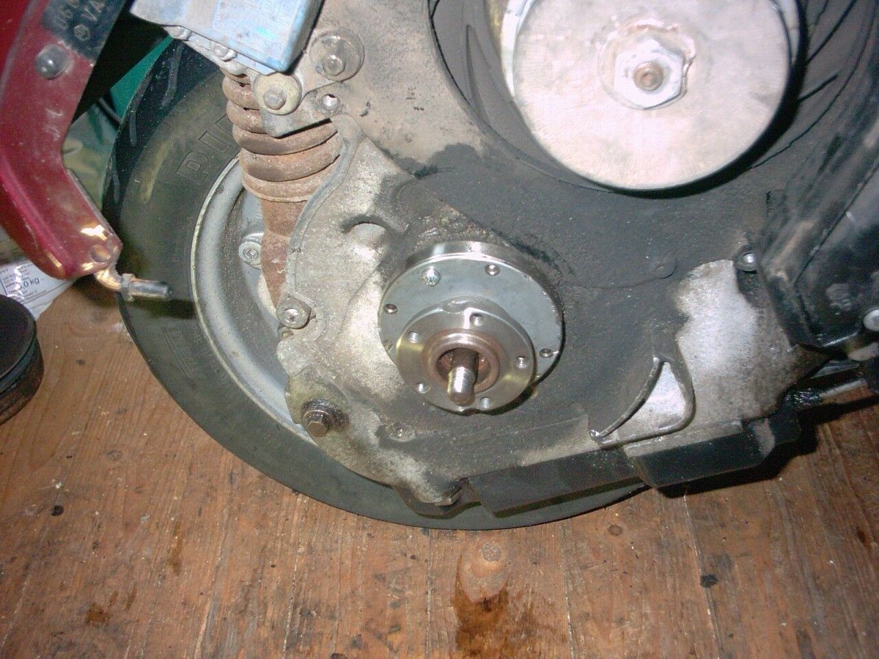 Die Kupplung habe ich runter, jetzt habe ich nur das Problem das ich die Aufnahme wo die hintere Riemenscheibe mit fünf Schrauben angeschraubt ist nicht von der Welle bekomme.