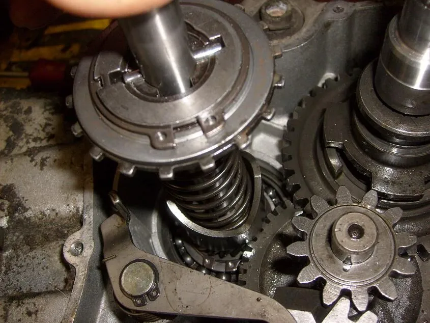 wenn ich mich richtig erinnere gehört die scheibe auf die welle mit der feder