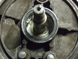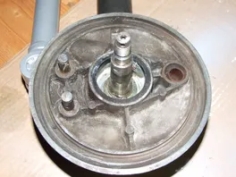 Gabelaufbau: Erst eine Scheibe, dann O-Ring, dann Ankerplatte drauf und von innen die Distanzscheibe für die Ankerplatte drauf, ist eine Unterlegscheibe, die an einer Seite angeschrägt ist, dann die Distanzscheibe mit nem Sicherungsring fixieren.Jetzt sollte nix mehr wackeln, denn wenn die [lexicon='Bremstrommel',''][/lexicon] und die Innereien rein kommen, verändert das ja nix mehr an der Haltung.