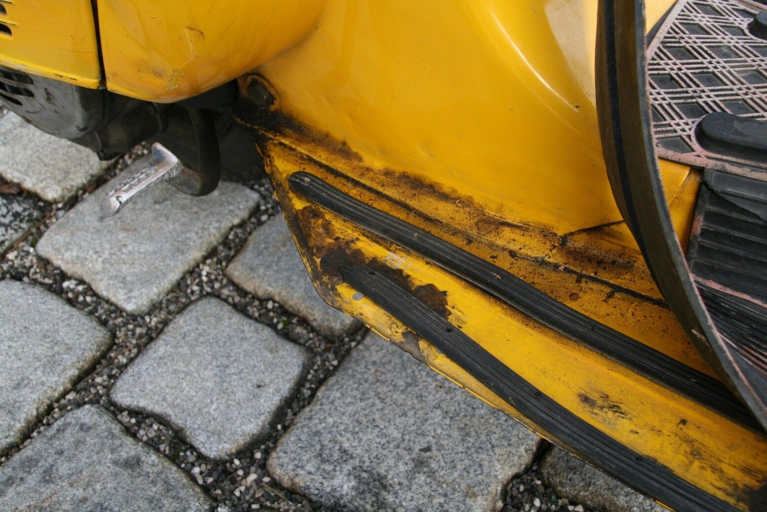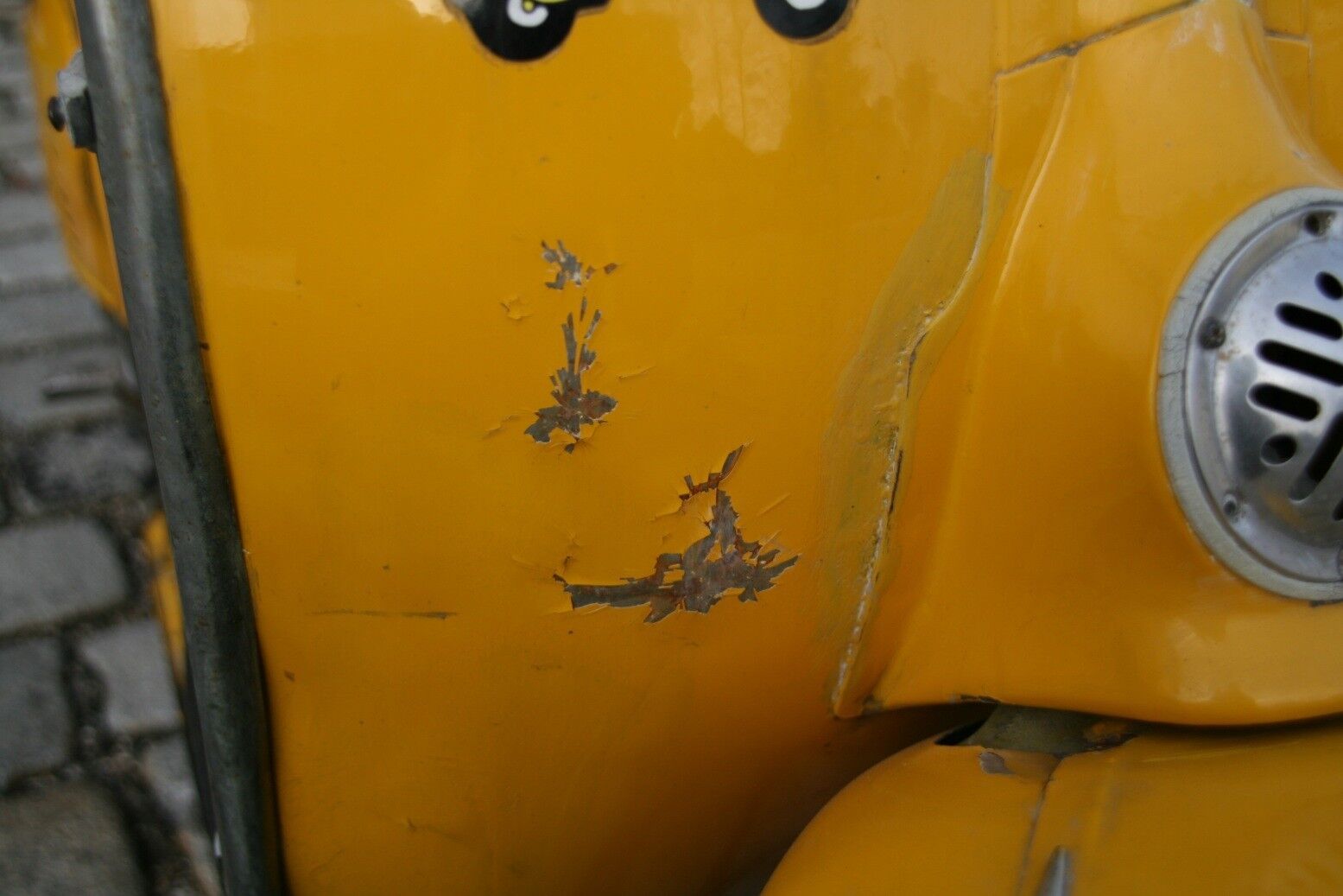 Braun war der Roller nie, das Gelb ist noch die erste Farbe... Braun ist nur das Rostschutzzeugs.