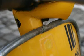 Hab ich vor dem Kauf geprüft. Der Koti schleift nicht am Beinschild .Dort ist auch kein Schaden zu sehen. Der Tunnel hat auch keinen Knick oder Ähnliches. Die Vorbesitzerin meinte, da ist sie mit 16 (also vor 29 Jahren !!) beim Anfahren gegen ein parkendes Auto geknallt...