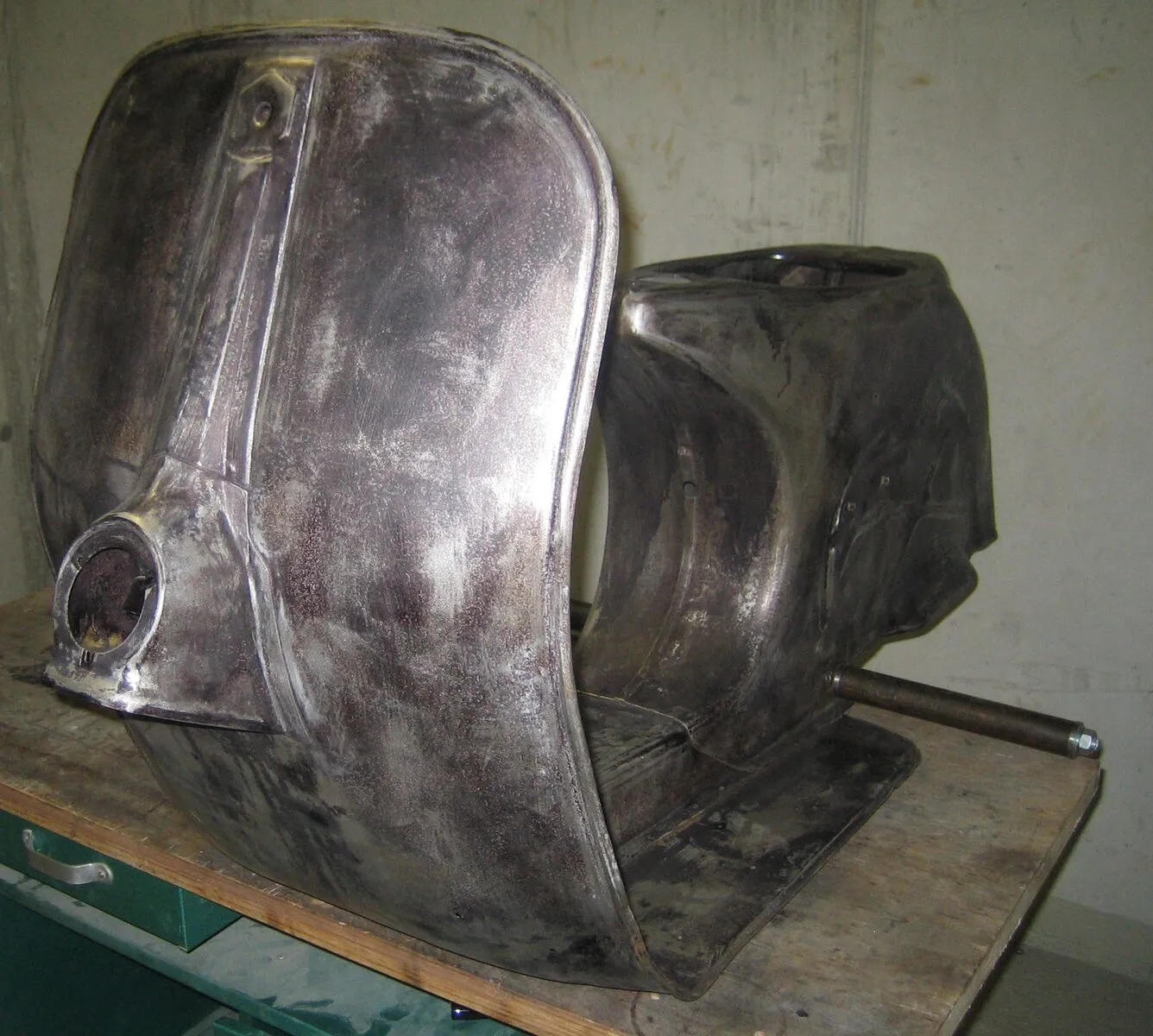 • Ich fürche nein. Ich würde, wenn ich das absichtlich bei einem Roller machen würde, den Rahmen wieder strahlen lassen und kurz in Gandis Garage stellen. Das gibt schön und schnell rost :P