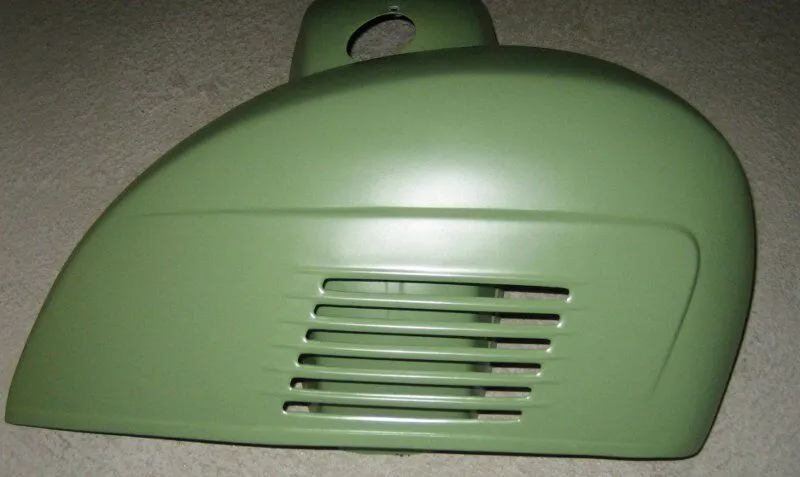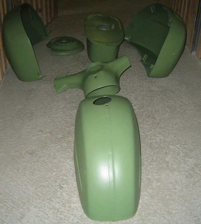 • Es geht vorwärts. Habe heute die Anbauteile lackiert retour bekommen. Die Motorabdeckung ist pulverbeschichtet, der Rest RAL 6011 seidenmatt (50% Mattierung).