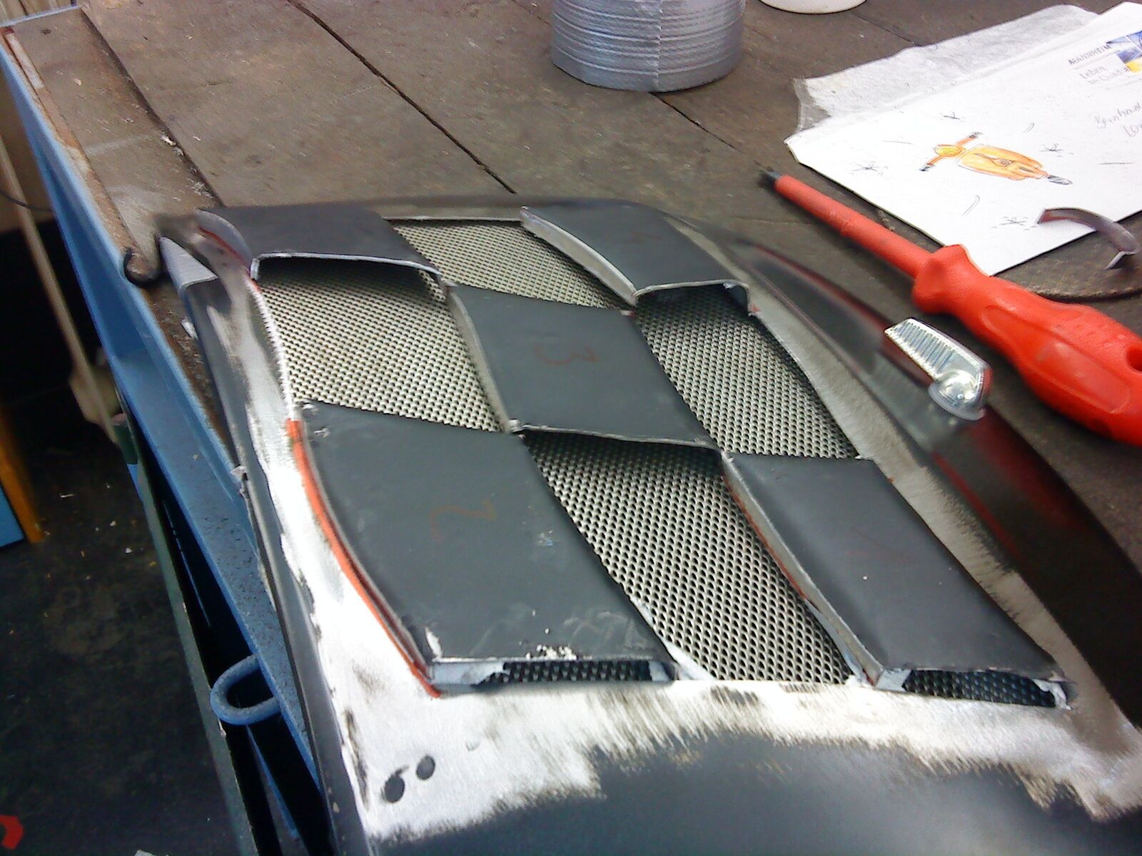 So hier die Bilder von der Entstehung der Auspuffbelüftungen (Arbeitsaufwand pro Deckel ca. 3 Stunden)