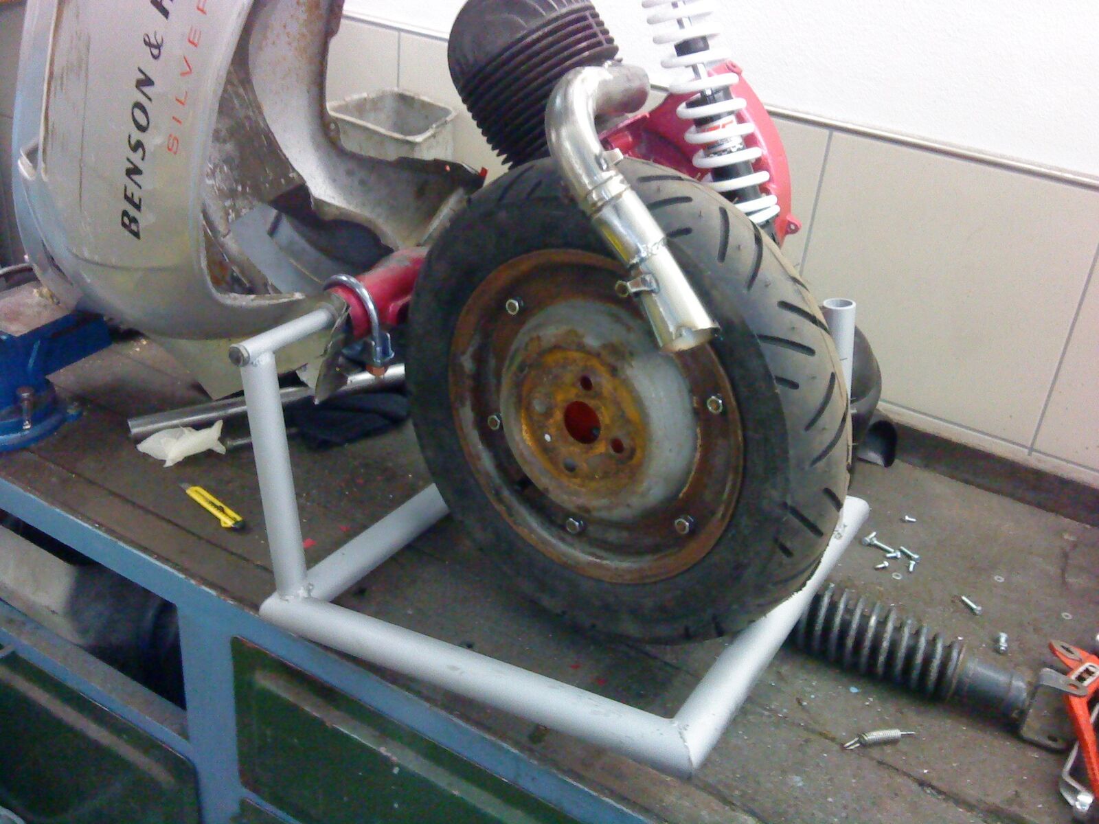 Hier die SF Variante (hier meiner leider noch nicht hinten höhenverstellbar) Eignet sich besonders gut zum Auspuff anpassen wenn man eine halbe V50 dranbaut