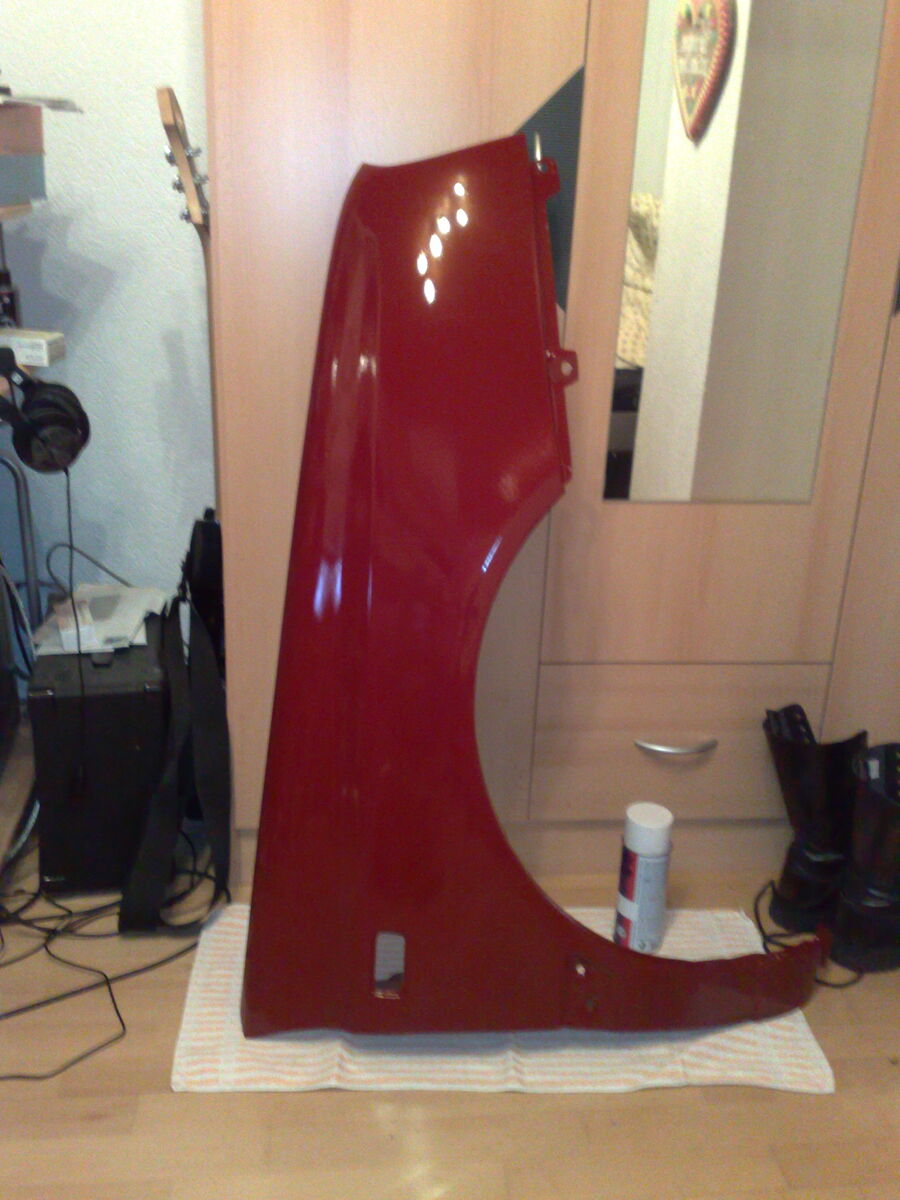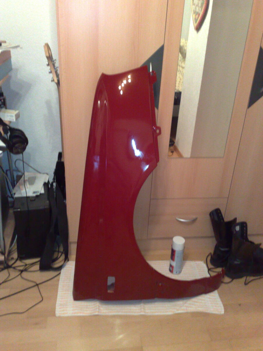 Naja musste ne ganze Weile aussetzen weil meine Kohle knapp wurde und ich erst auf den Kotflügel und jetzt nochma 3 Wochen auf den kack Lack warten musste... im Endeffekt hät ich den Lack gleich im Netz bestellen sollen statt im Biberbaumarkt.