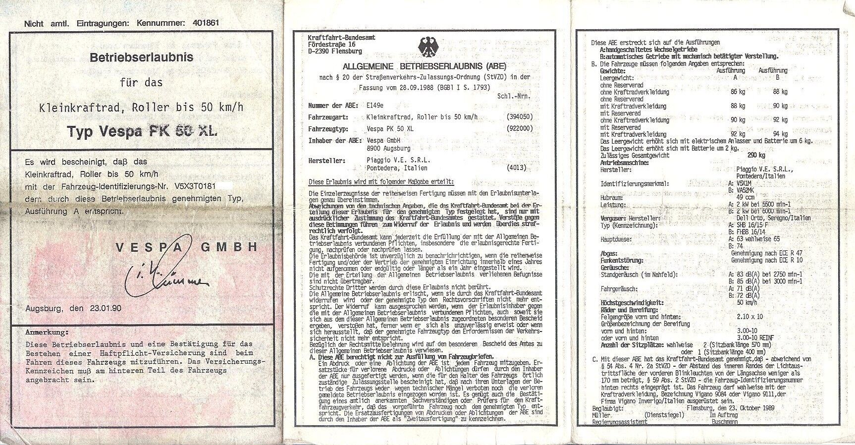 Leider bekomme ich für meine XL keine Papiere (italienerin). Daher muss ich zur Vollabnahme zum Tüv. Da der keine Daten hat muss ich ihm was mitbringen. Kann mir jemand eine Kopie seiner Abe für ne V5X3T schicken? Hoffe das Thema gibbet noch nich- konnts nich finden...