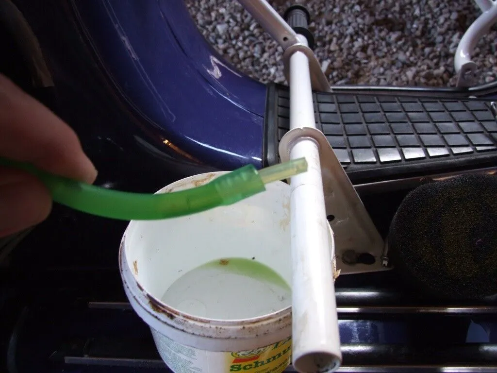 Daher erstens das totale Überlaufen des Vergasers und zweitens das Absterben des Motor wenn er richtig Sprit braucht. Sprich, ich gieße mit einer Gießkanne den Sprit in den Zylinder. Daher auch das absterben.