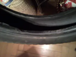 Die Felgen habe ich gelöst und habe nun die Mäntel der Reifen vor mir. Das ich den Schlauch austauschen muss, war mir bereits nach Öffnen der Felgen klar, weil dieser wirklich fertig und auch eingeklemmt war.