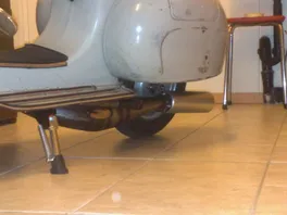und vorne kommt der auspuff gefährlich nah an den Federbügel (Hauptständer). wenn ich die vespa auf den ständer stelle, oder ab den ständer nähmen will, dann streife ich manchmal mit dem Bügel an den Auspuff.