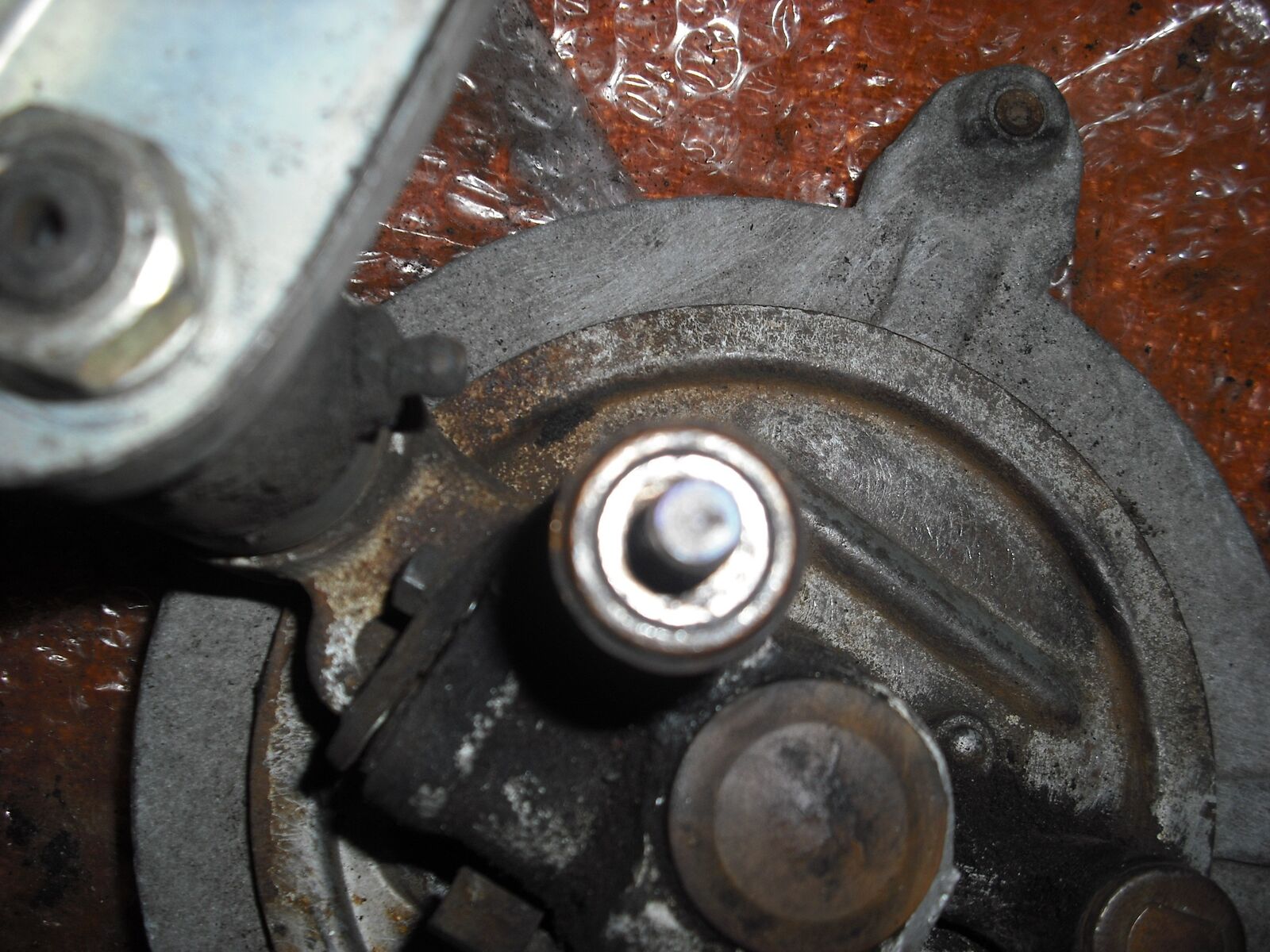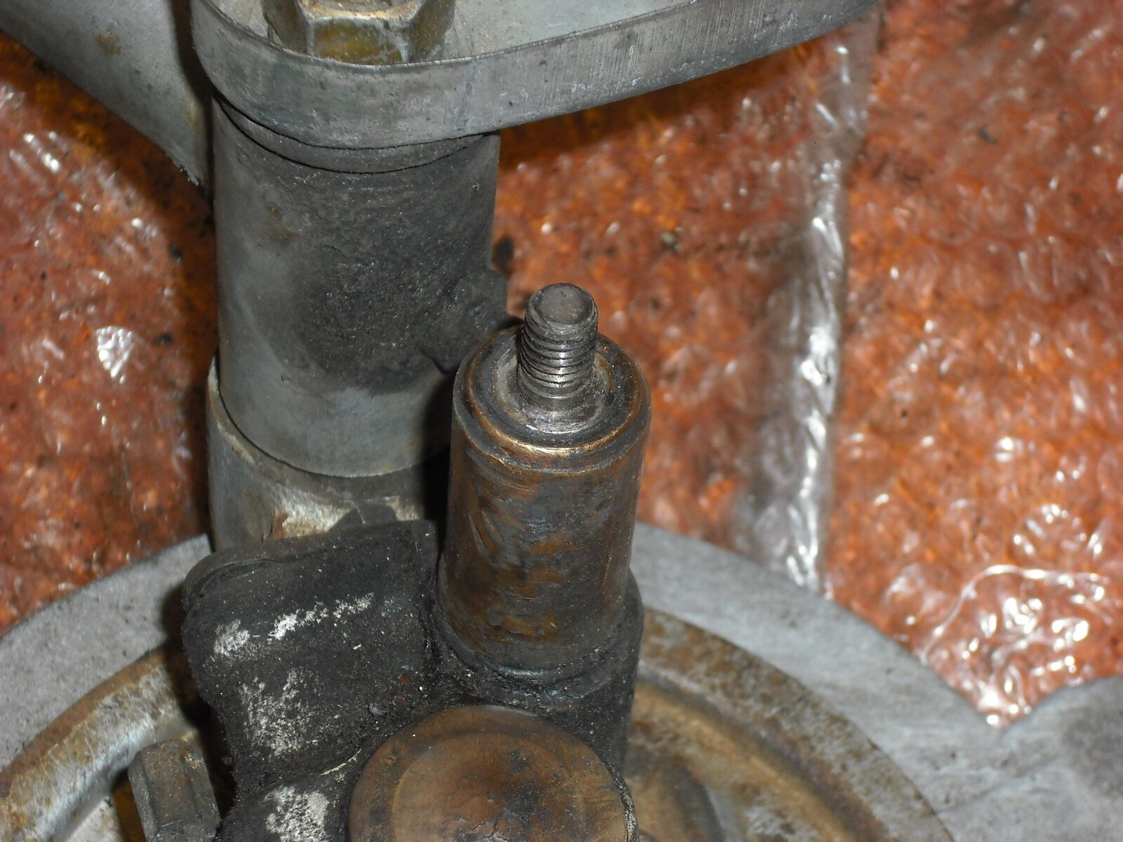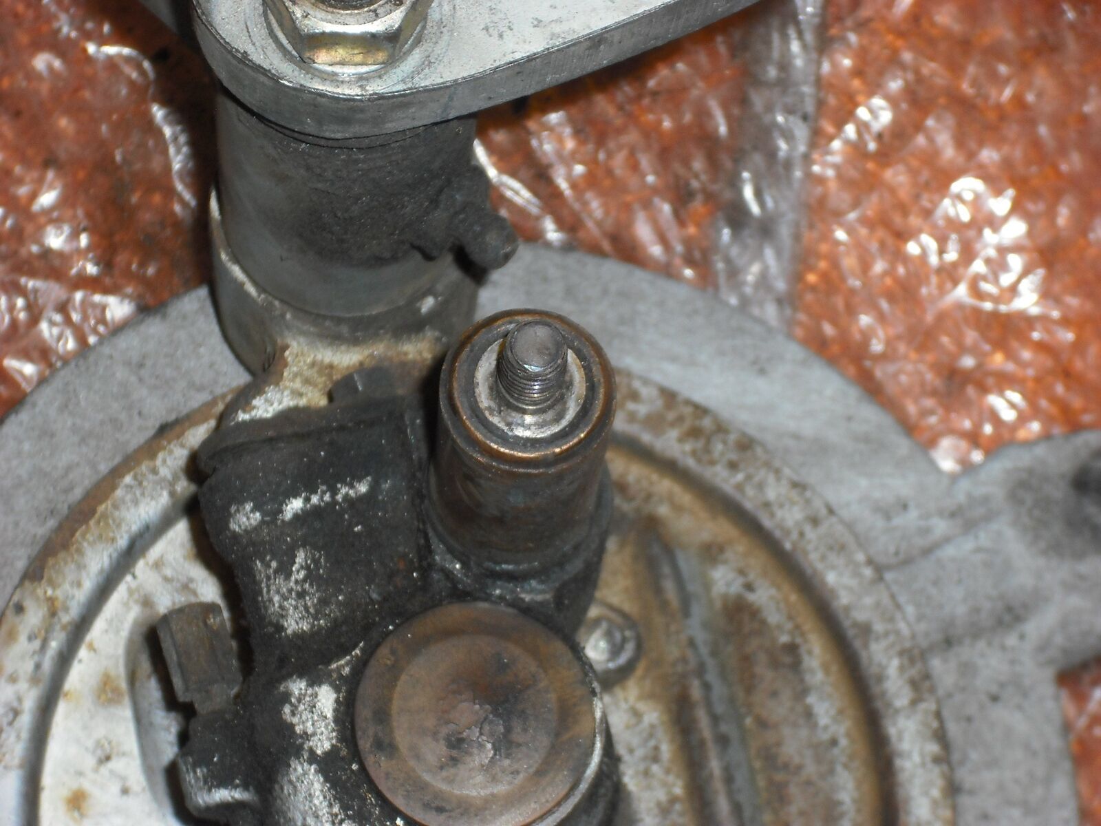 vom Federbein weg ist und eine Hülse (Messing) auf der Grundplatte steckt!