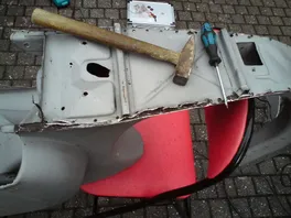 habe alle schweißpunkte aufgebohrt und dann das beinschild mithilfe der flex,hammer und meißel(schraubenzeiher) heraus getrennt...