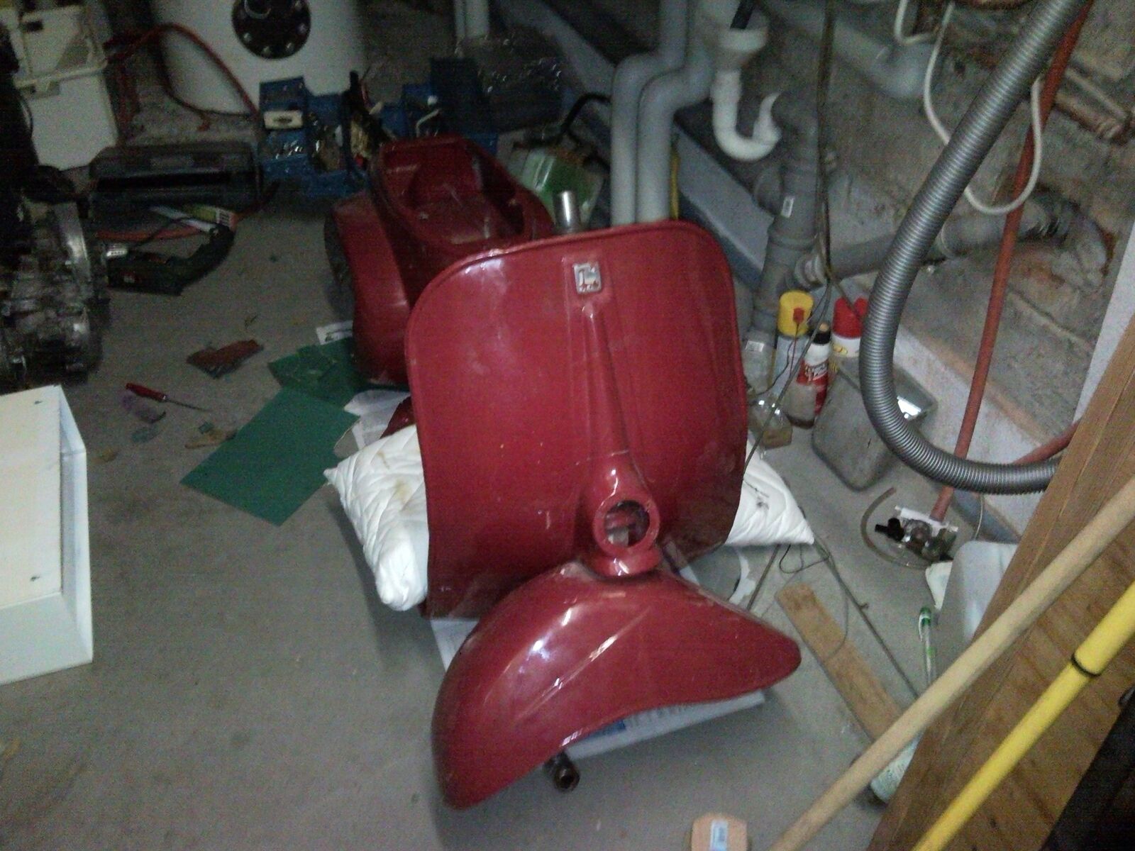 Am Freitag kam die Vespa vom Strahlen zurück und ist jetzt bei einem Spengler (ebenfalls ein Freund), der mir die ganze Sache kostenlos macht.