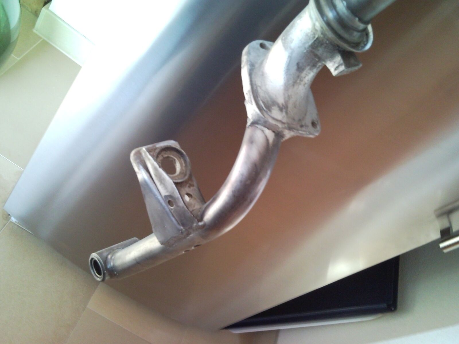 Jemand hatte mal erwähnt, dass das mittlere Teil an dem sich der Lenkanschalg befindet und an dem auch der Kotflügel befestigt wird aus Aluminium ist und daher nicht lackiert werden kann.
