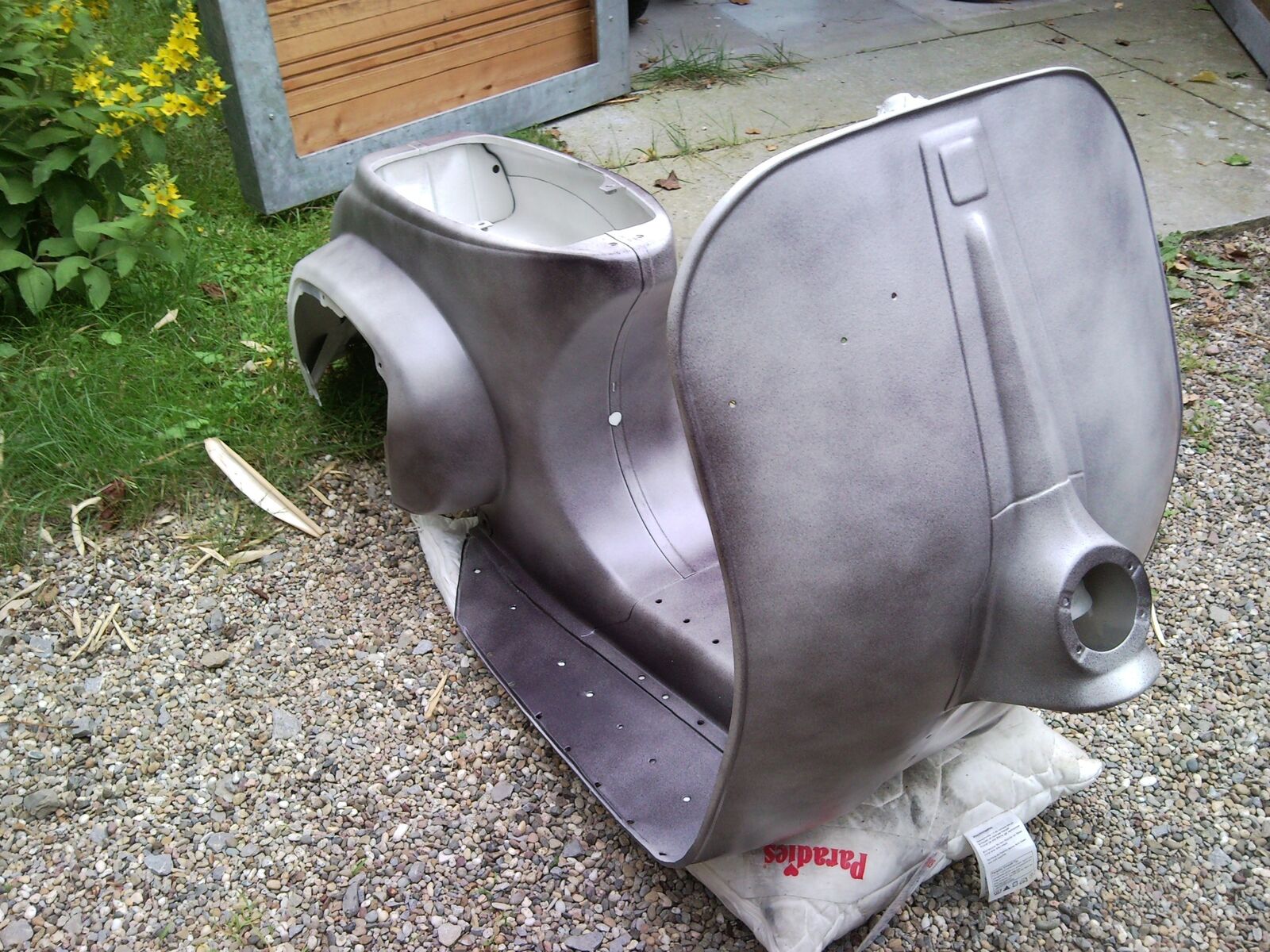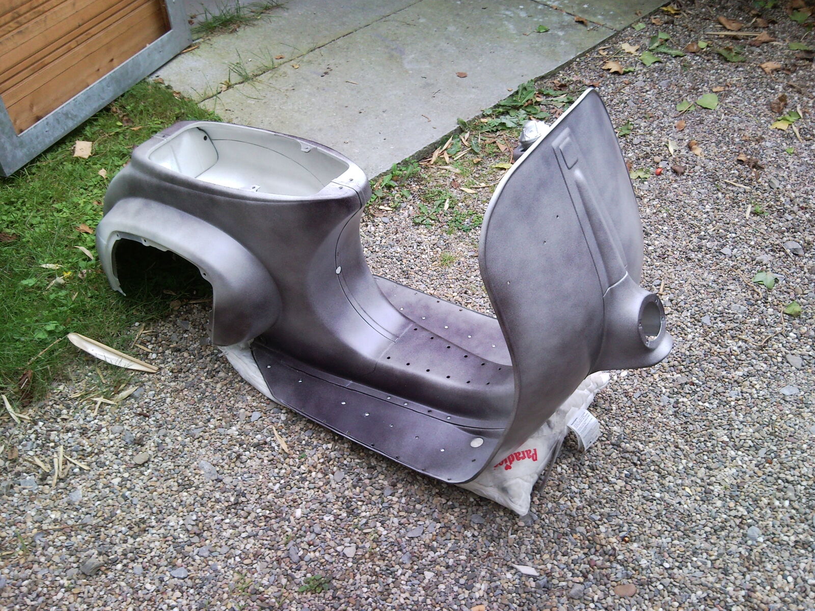 Nach 6 Stunden arbeiten hab ichs dann heute doch geschafft und meine Vespa fertig abgeschliffen.