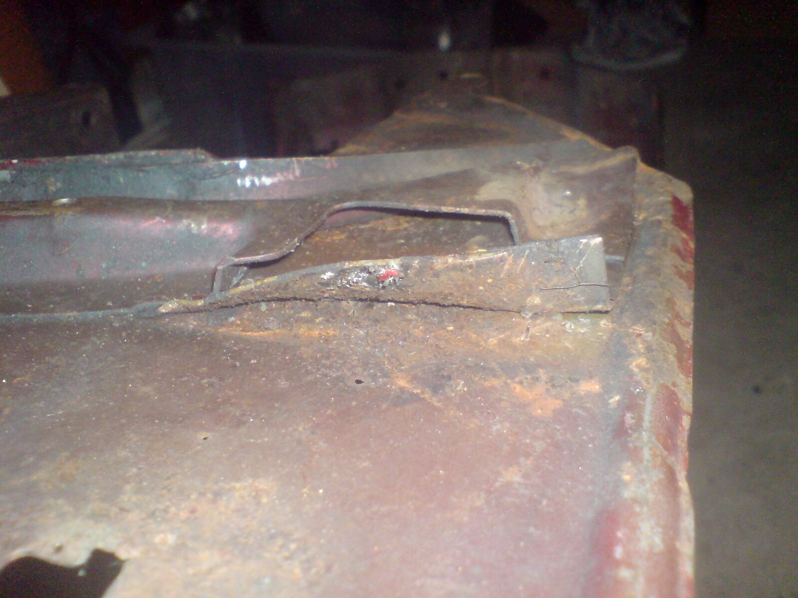 Ich hätte gesagt, dass ich zunächst die durchgerosteten Stellen bzw. eig das ganze Trittblech inclusive Verstrebungen rausschneide rausschneide (Flex?) sowie diese Stelle mit dem Loch unter dem Träger.