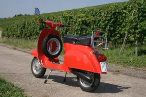 ich muß ja mal fragen was das für ´ne Gabel Felgen Combo ist. Das erste mal das mir ´ne Fremdfelge auf der Vespa gefällt. Sieht fast aus wie eine kleine Porsche Cup Felge......sehr schick!