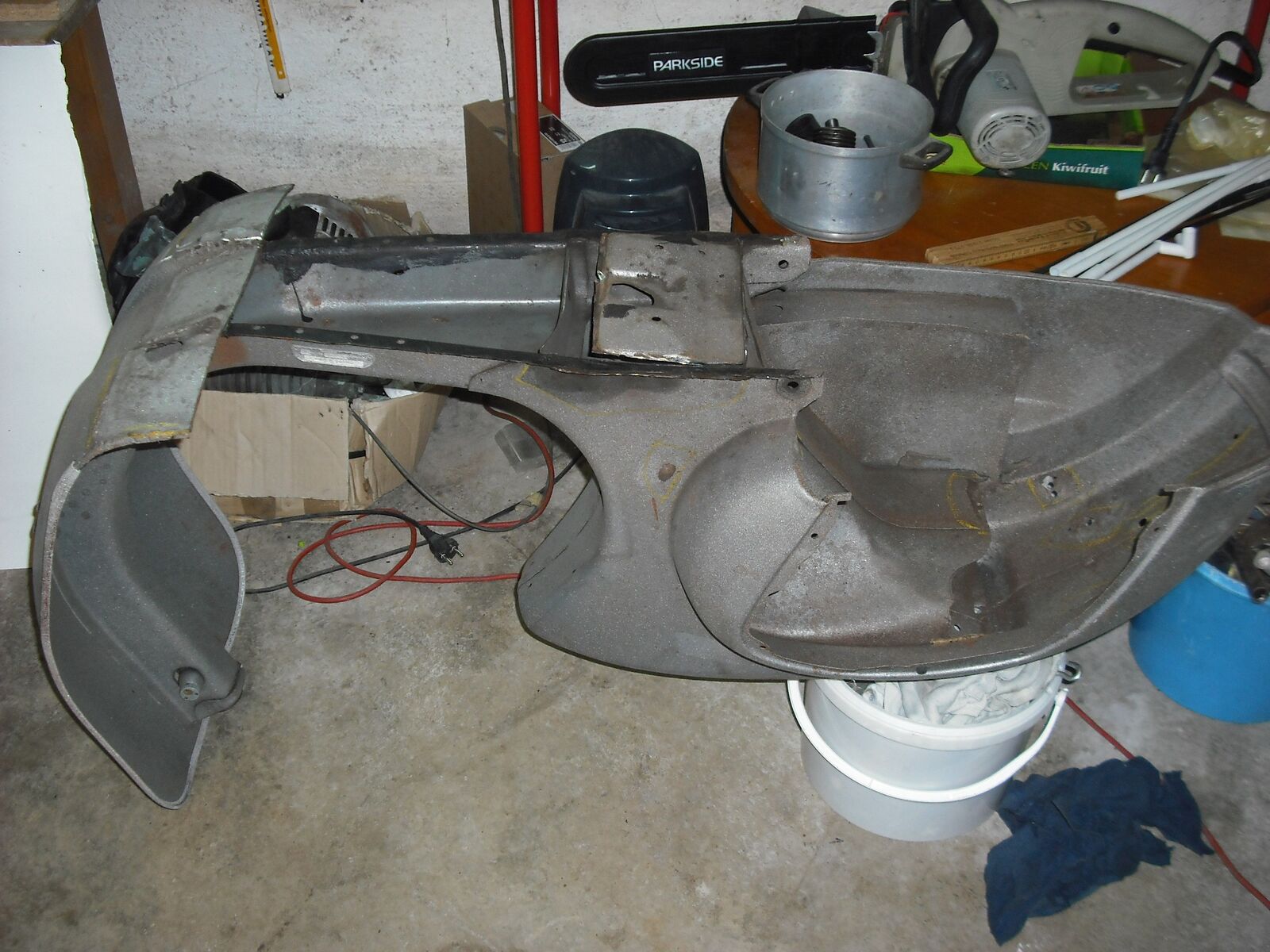 Den Rahmen habe ich im Sommer erworben, sah schon recht fertig aus. Aber nach dem Strahlen kam der Horror, nun ja Schweißgerät gekauft und