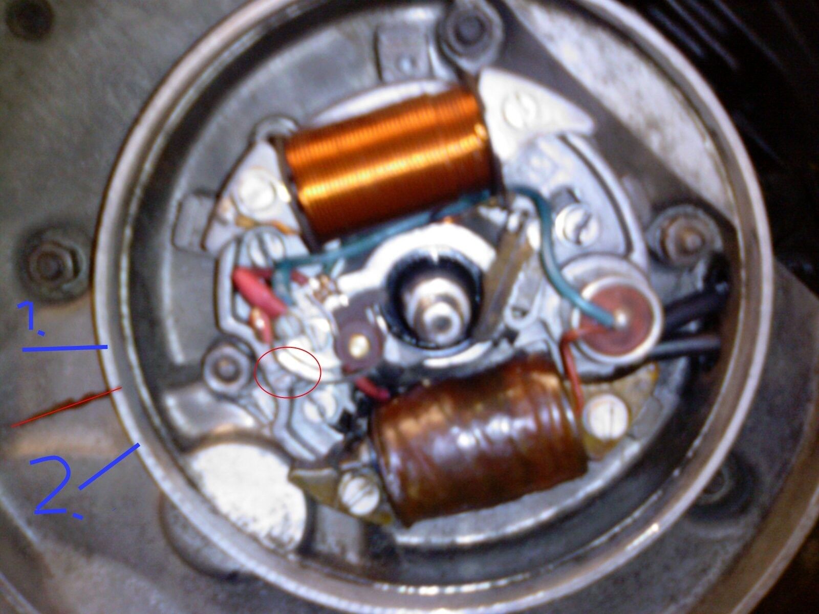 Durch die Mulden in der grundplatte ist es mir unmöglich mehr zu verdrehen. habe die zündung nun im uhrzeigersinn auf anschlag und bekomme die vespa gestartet! ich kann auch fahren und sie durch spielen mit dem gas bleibt sie am leben! standgaseinstellungen sind noch unmöglich das alles zu unruhig läuft -> zündung noch nicht gut!