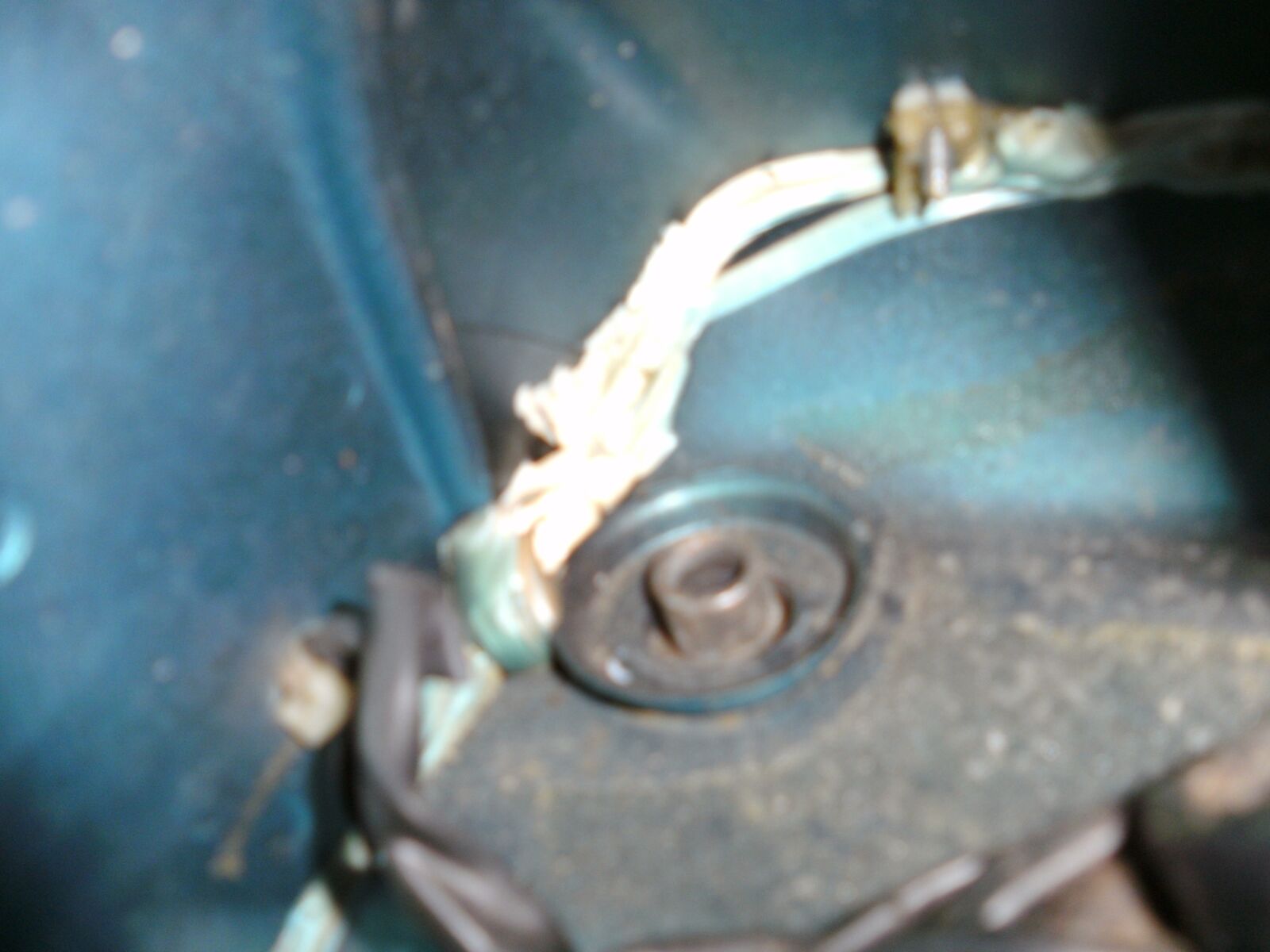 Die Federung an der Vespa ist ja unten am Motorblock befestigt und oben an der Vespa. Sehen kann man das ganze ja von oben wenn man den Tank ausbaut dann guckt da die Federungsbefestigung raus. So Problem der ganzen sache ist ist das die Feder oben nicht mehr befestigt ist sondern nurnoch in dem Lock hängt und bei nem Schlagloch da sofort rausknallt und einfach irgendwo von unten gegen die Karosserie drückt.