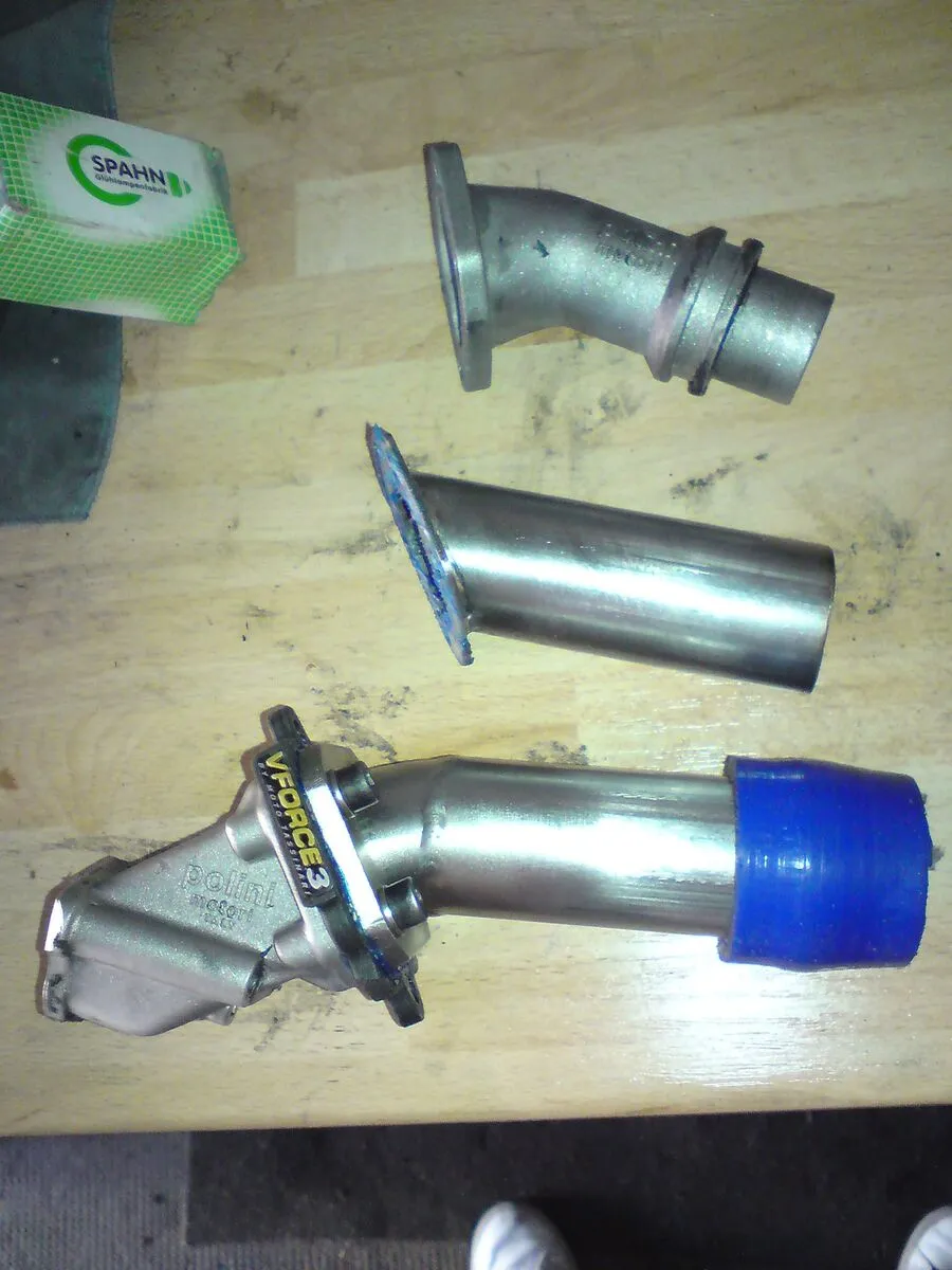 von original Polini 24er ASS (auf 26mm erweitert) zu Edelstahl ASS mit 32mm Innendurchmesser (Adapterplatte gefräst, Rohre verschweissen lassen)
