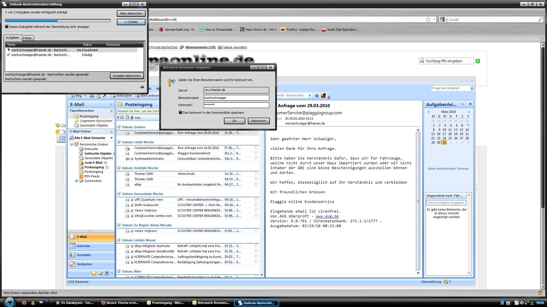 Habs neulich mal installiert, hab alles richtig eingestellt und die letzte zeit immer schön e-mail damit abgeholt...aber irgendwie geht das Senden nicht. Hab dann bissl recherchiert und ein paar häckchen mehr gesetzt womits eigentlich getan sein sollte...nun will outlook senden, aber es kommt immer und immer wieder diese doofe meldung: