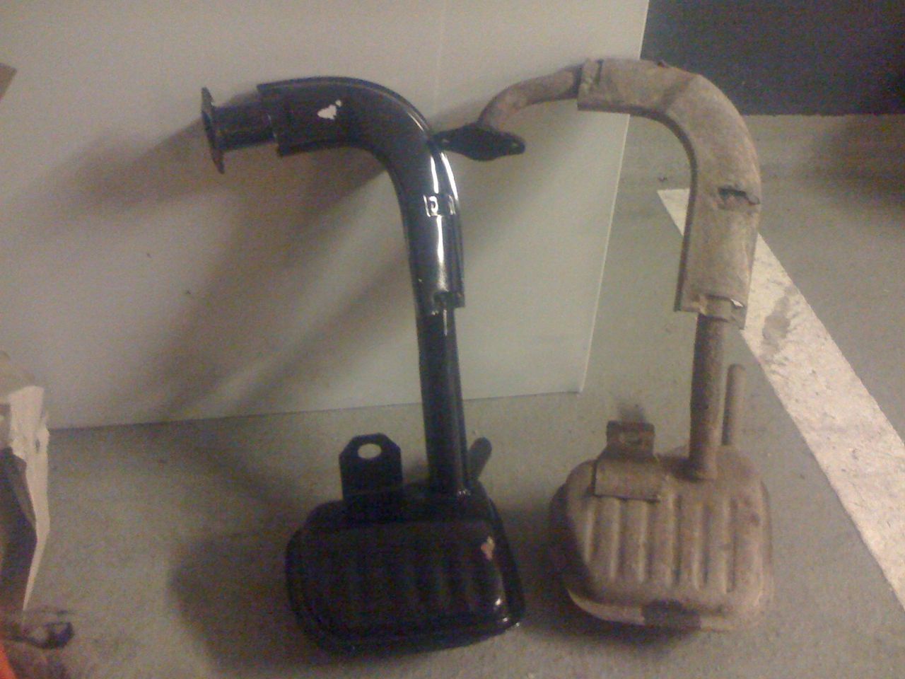 Der andere Auspuff hatte keinen seperaten Krümmer, da es sich um das berüchtigte deutsche "Drossel-Modell" handelt, dass die V50 trotz 16.16 Vergaser brav die 40 km/h Zulassung bescherte. Soll heißen mit dem neuen Auspuff sollte sich die Karre etwas "sportlicher" fahren lassen als zuvor.
