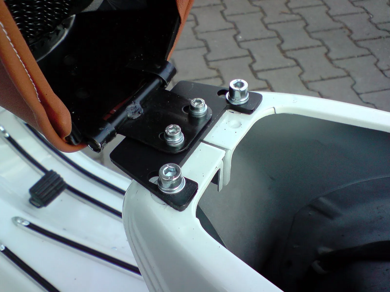 Pimp verkauft die schwarze Monositzbank schon umgebaut für 89,- nur in schwarz. Ich wollte unbedingt die braune von SIP für 65 Euro. Die ist ohne Zapfen, der alleine ca. 8 Euro bei SIP kostet. Der ist beim Umbausatz dabei. Somit kostet der Satz nur 12 Euro inkl. aller Schrauben (TOP-Qualität). Auf den Bilder sieht man das Blech hinten mit fertig eingebautem Zapfen, vorne das fertig gebohrte und mit Gewinden versehene Umbaublech sowie das U-Blech für die Mitte, da sonst die Originalstrebe auf dem Tankdeckel aufsitzt. Was man da alles aus nem Stück Eisen vermessen und zuschneiden, flexen, lackieren etc etc machen muss, ist meiner Meinung nach für 12 Euro nicht zu schaffen. Der Umbausatz passte zudem auf Anhieb und das Rausflexen der Mittelstreb kann ja wohl jeder, wenns ich schaffe mit dem Dremel.