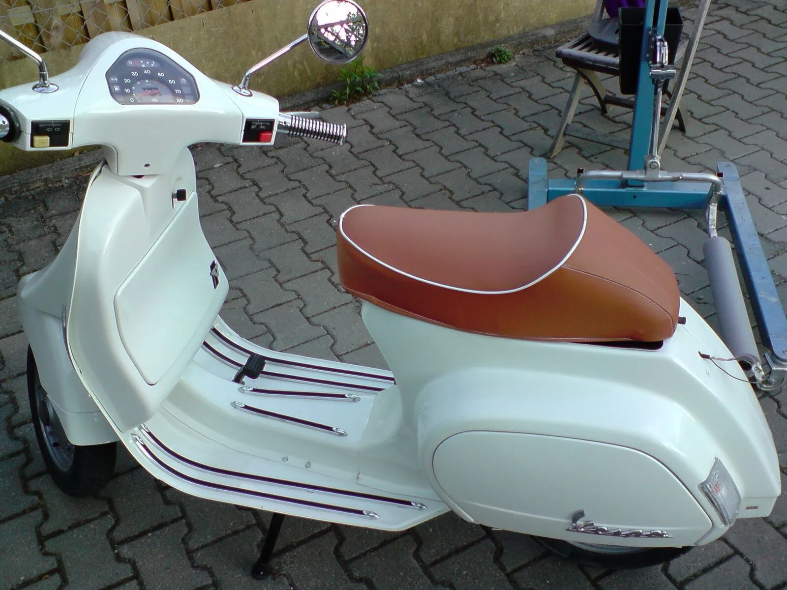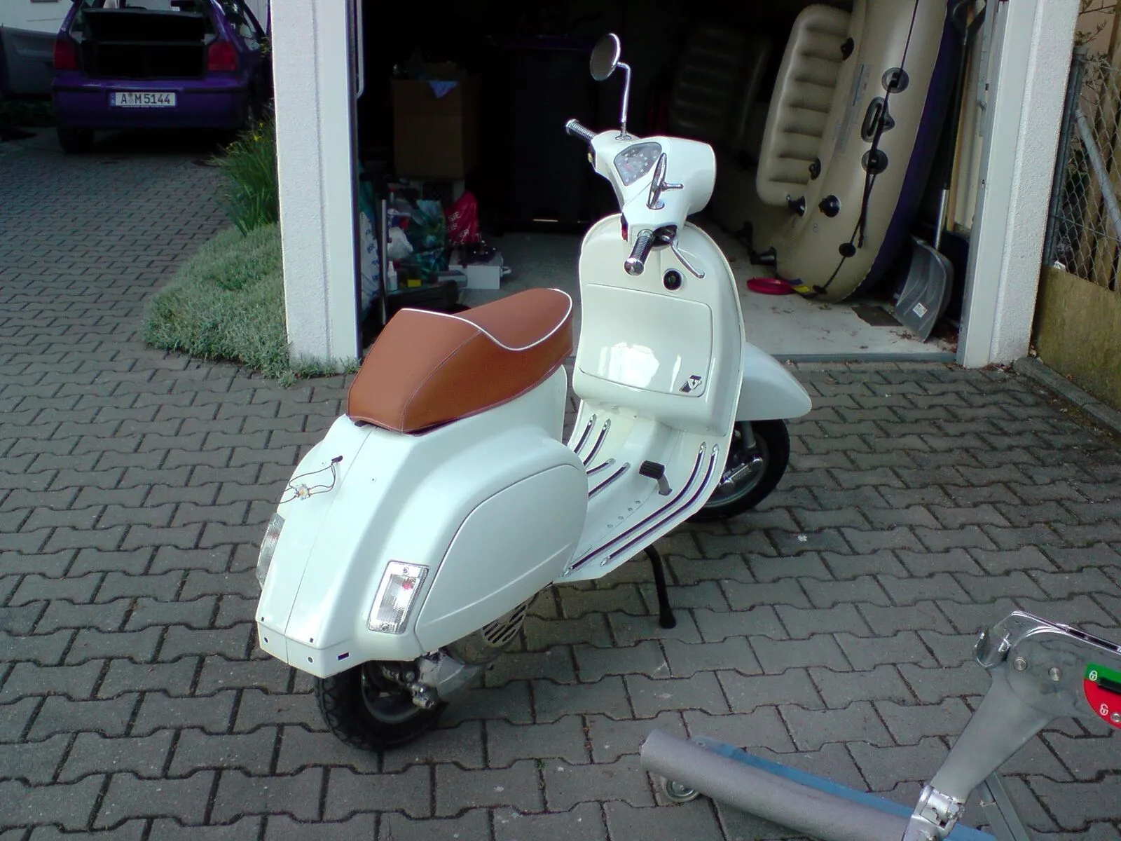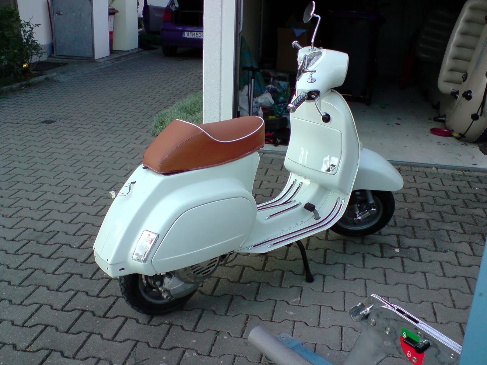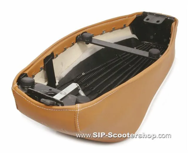 gestern hab ich endlich die "schöne braune" Monositzbank vom SIP verbaut. Vielen Dank hier an "pimp-your-vespa.de", die mir den Umbausatz lieferten, der total einfach zu montieren war und mit 20 Euro spottbillig.