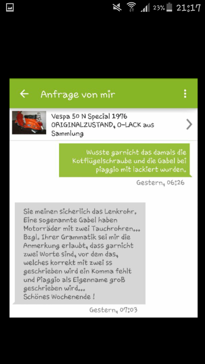 Eigentlich fehlt nur noch: "Kenner wissen den Wert so einer alten Rundlichtvespa zu schätzen".