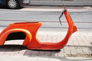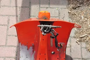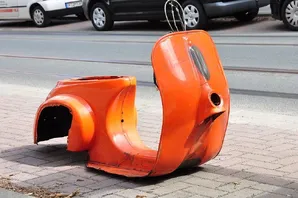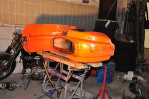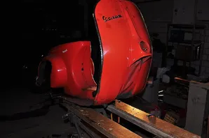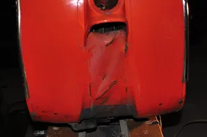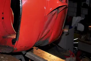 Das Hauptproblem ist vermutlich... der Rahmen! Ich bin damals mit ca. 50km/h auf ein stehendes Auto gesemmelt, wodurch der Rahmen einen Schlag abbekommen hat. Die Wellen im Beinschild sprechen für sich... Das Heck ist innen und außen von sehr guter Substanz.