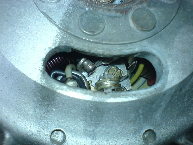 Du siehst ja bei der öffnung ungefähr mittig (leicht links) oben is son kleiner "Metallblock"! Dieser "Block" stellt 2 kontakte dar, die sich bei jeder drehung des Lüfterrades einmal öffnen sollten! Denn immer wenn die dinger geöffnet werden, entsteht ein zündfunke! So, du musst nun die kontakte so justieren, dass sie bei öffnung die vorgeschriebene länge voneinander entfernt sind... Geht am besten mit so ner plättchenlehre, schiebs dann einfach das plättchen der entsprechenden dicke zwischen die kontakte, öffnest die schraube und drückst die beiden kontakte so dass sie direkt auf dem Blättchen liegen und dann ziehst du die Justierungsschraube fest!